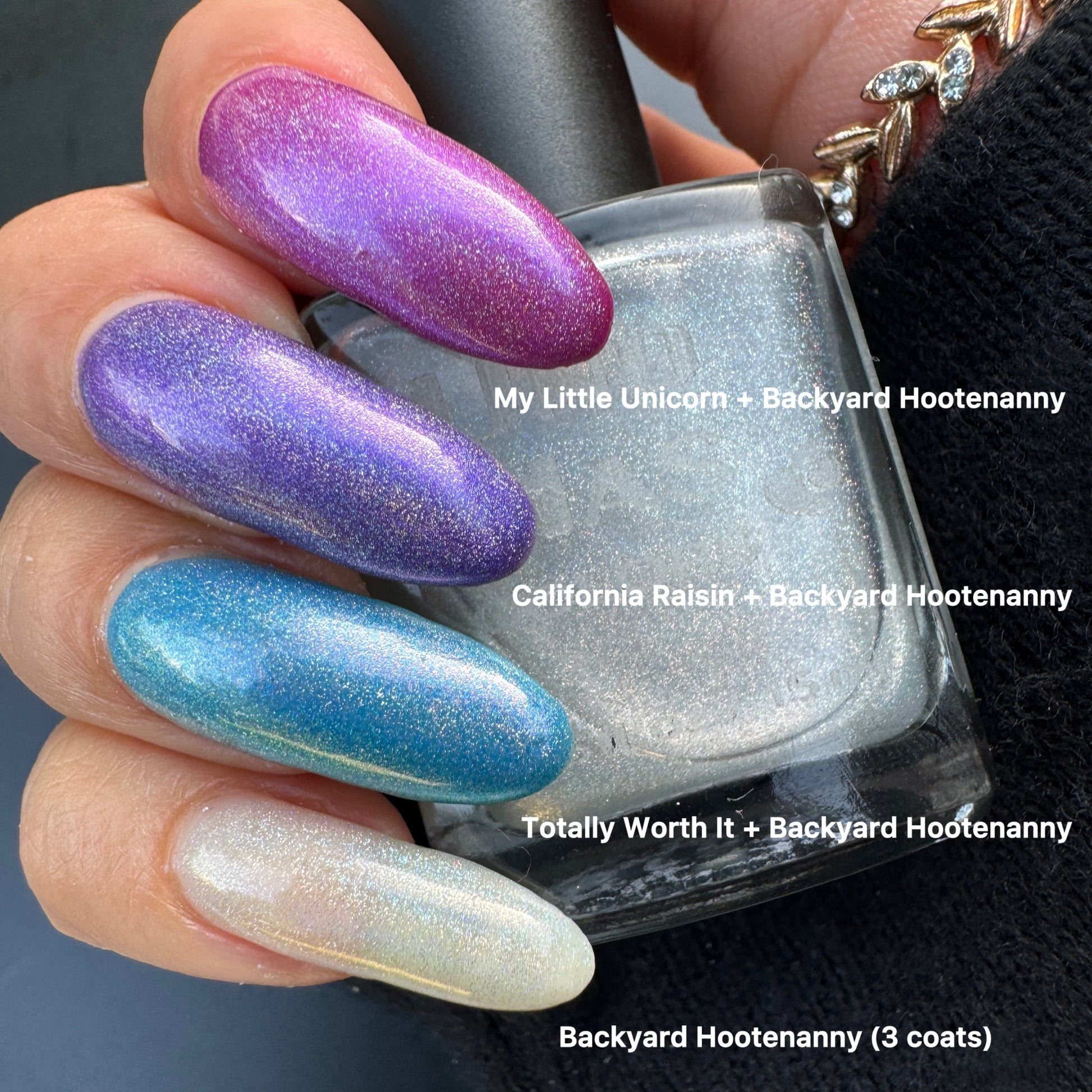 Don't be fooled by the name, Backyard Hootenanny is a bootle filled with a very classy, beautiful, and ethereal linear holo topper aka Spectraflair. No corners are cut here - we bring you the good stuff.