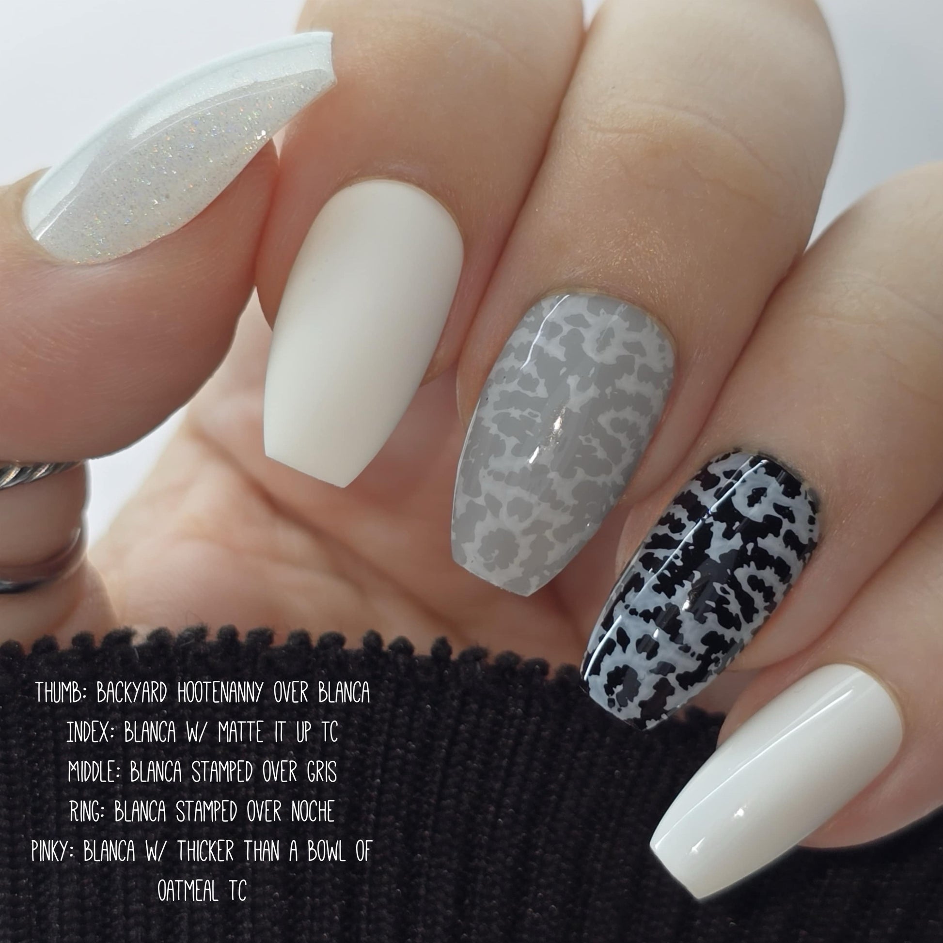 Blanca is a stark white creme that is opaque in 2 coats.