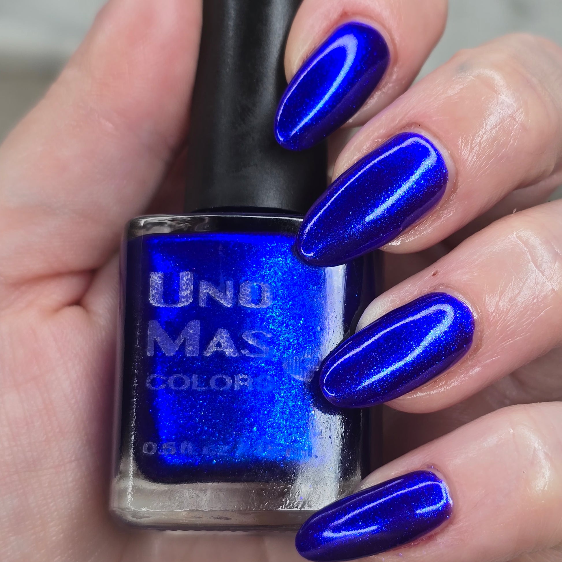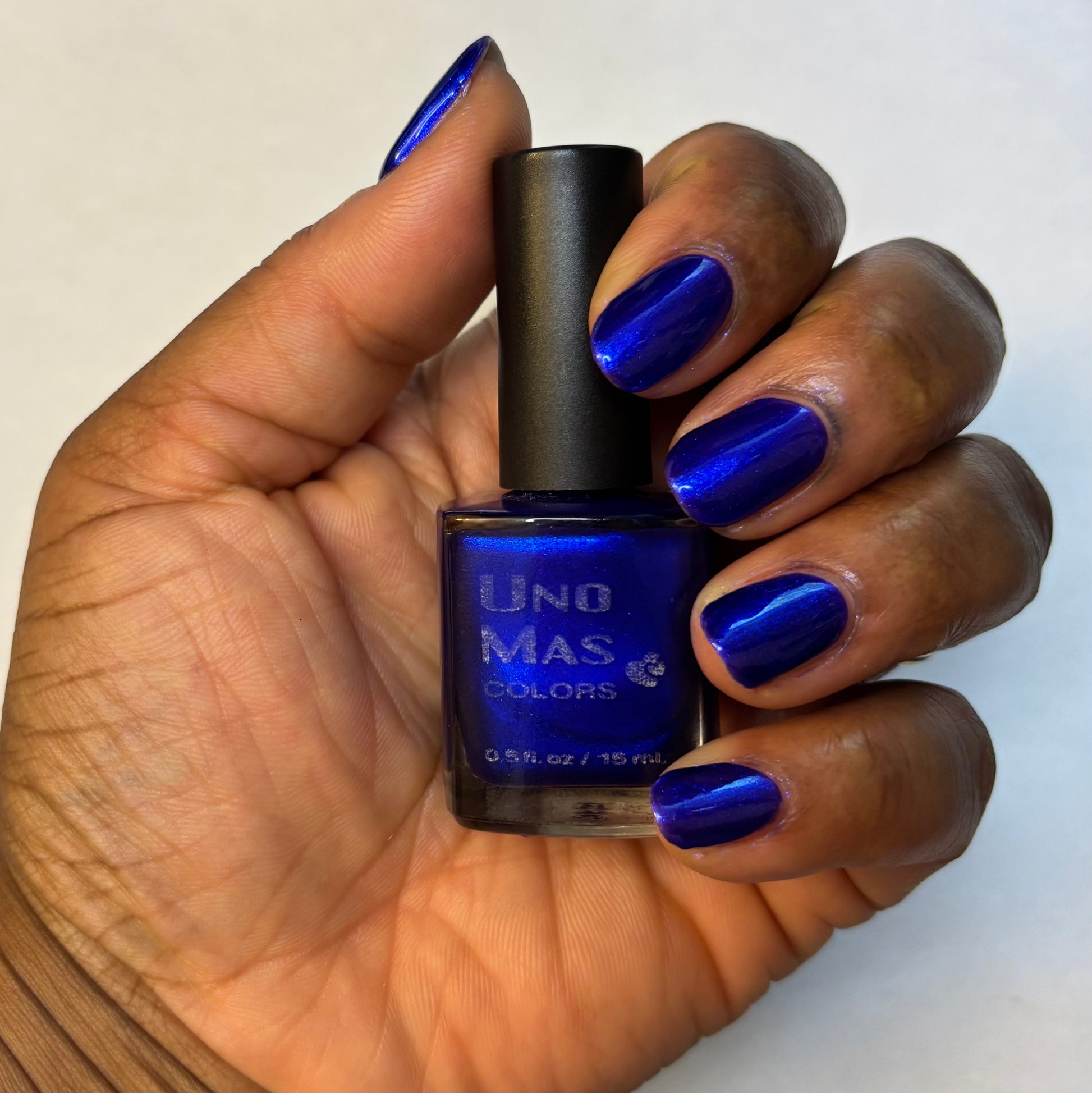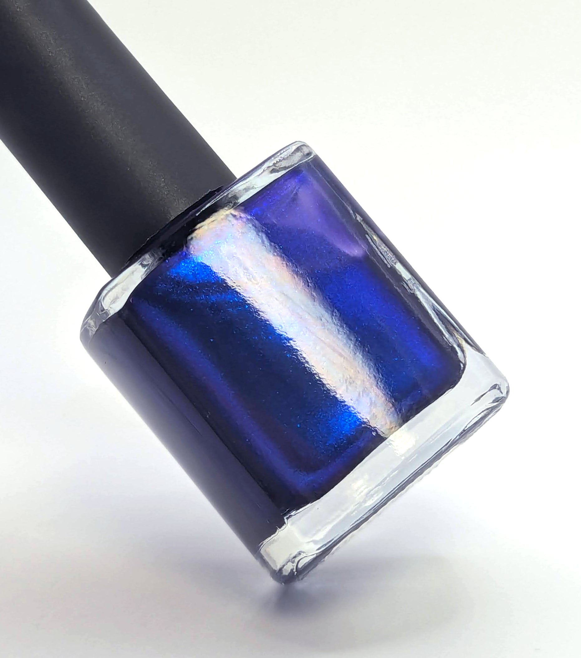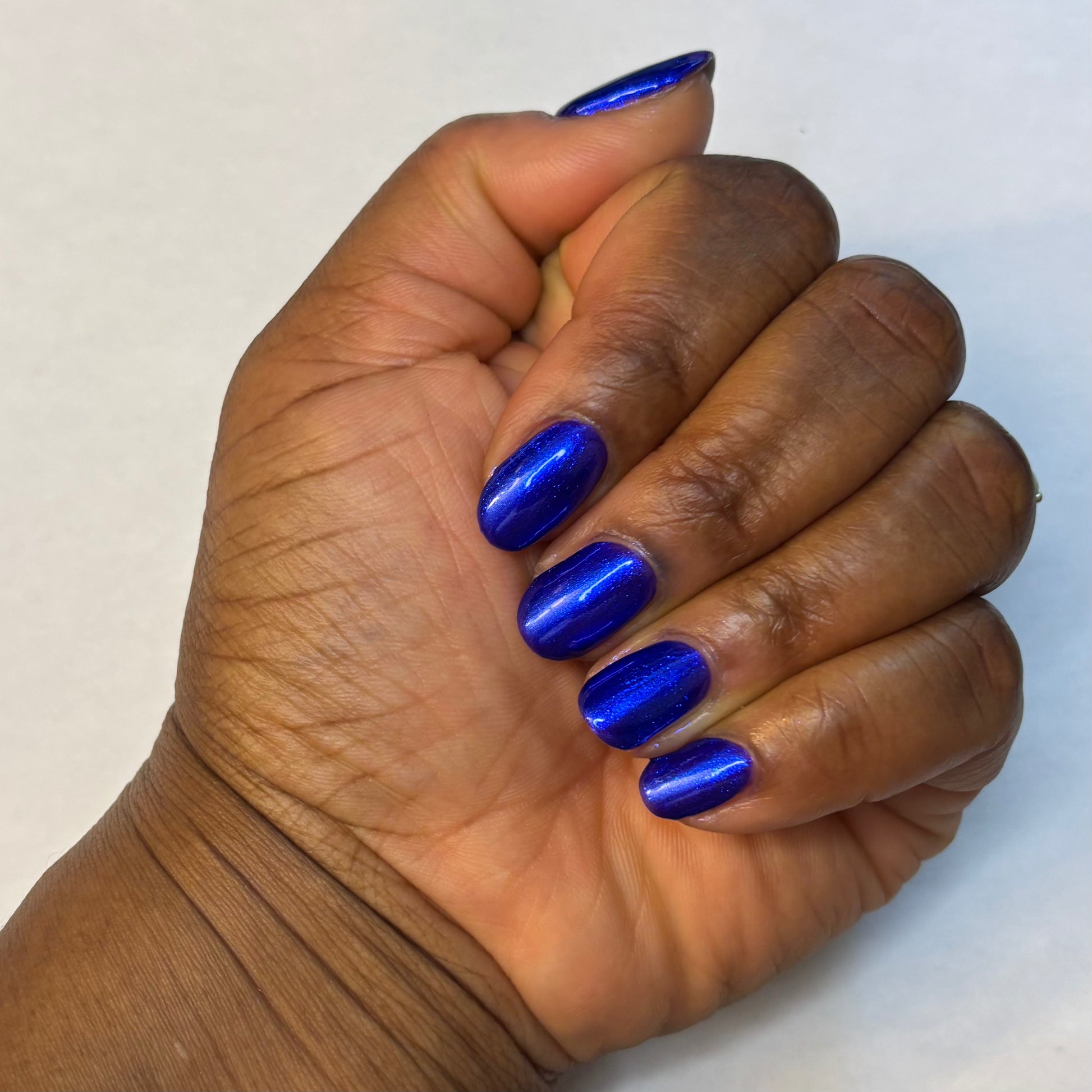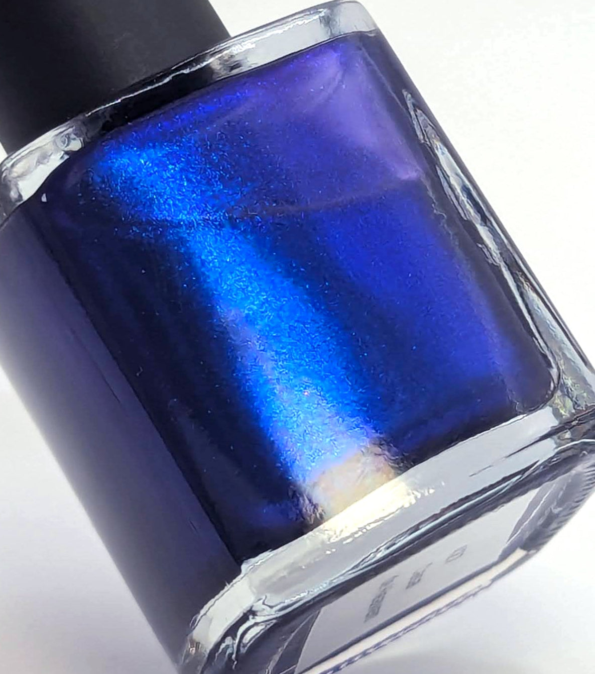 This is a shimmery, sparkly blue, with a hint of purple that will catch you off guard when you least expect it. It goes on smooth, completely opaque in 2 coats.