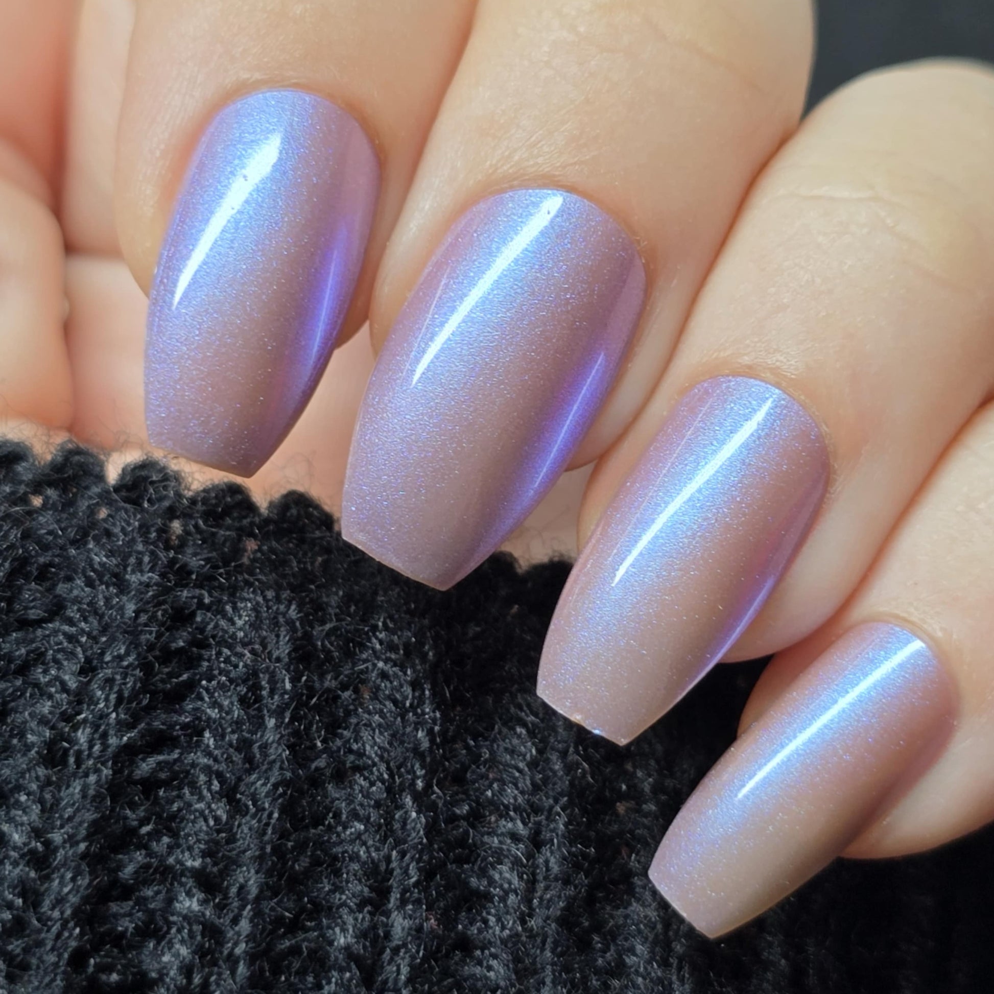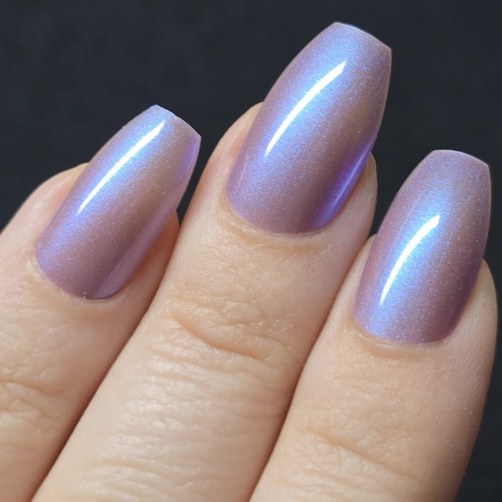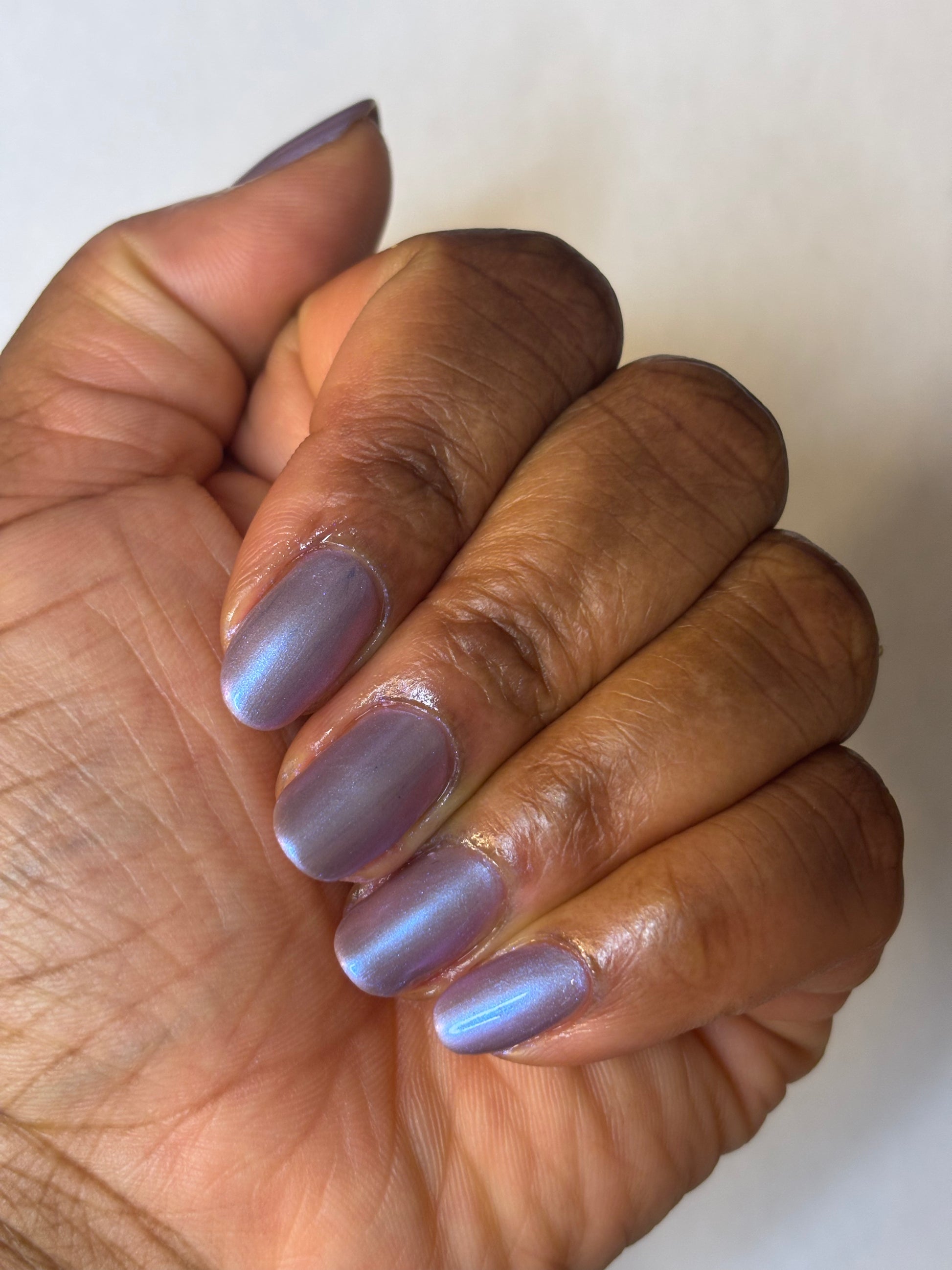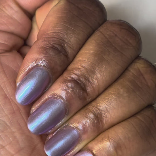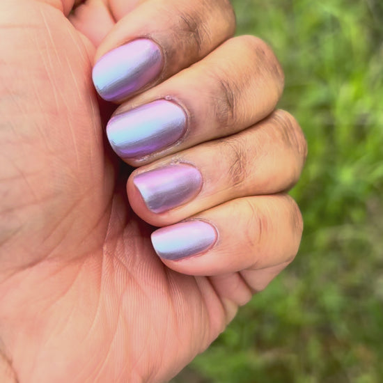 This color shift polish goes on smooth with a vibrant shimmer and nice depth. One coat will yield a purple/pink tone and a second coat will bring more blurples and blues! Two to three coats is recommended for maximum mani life.