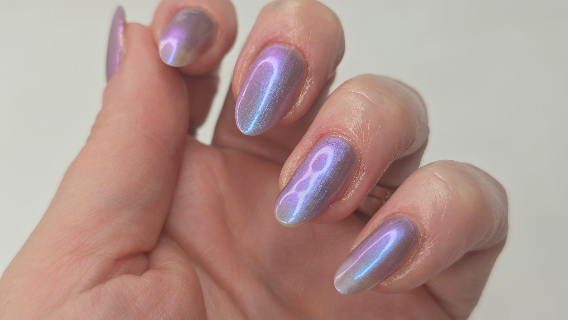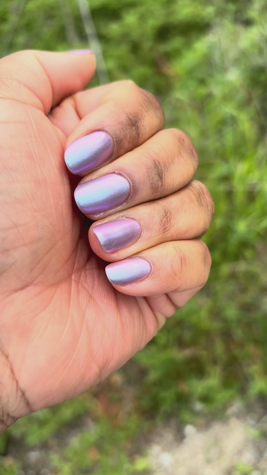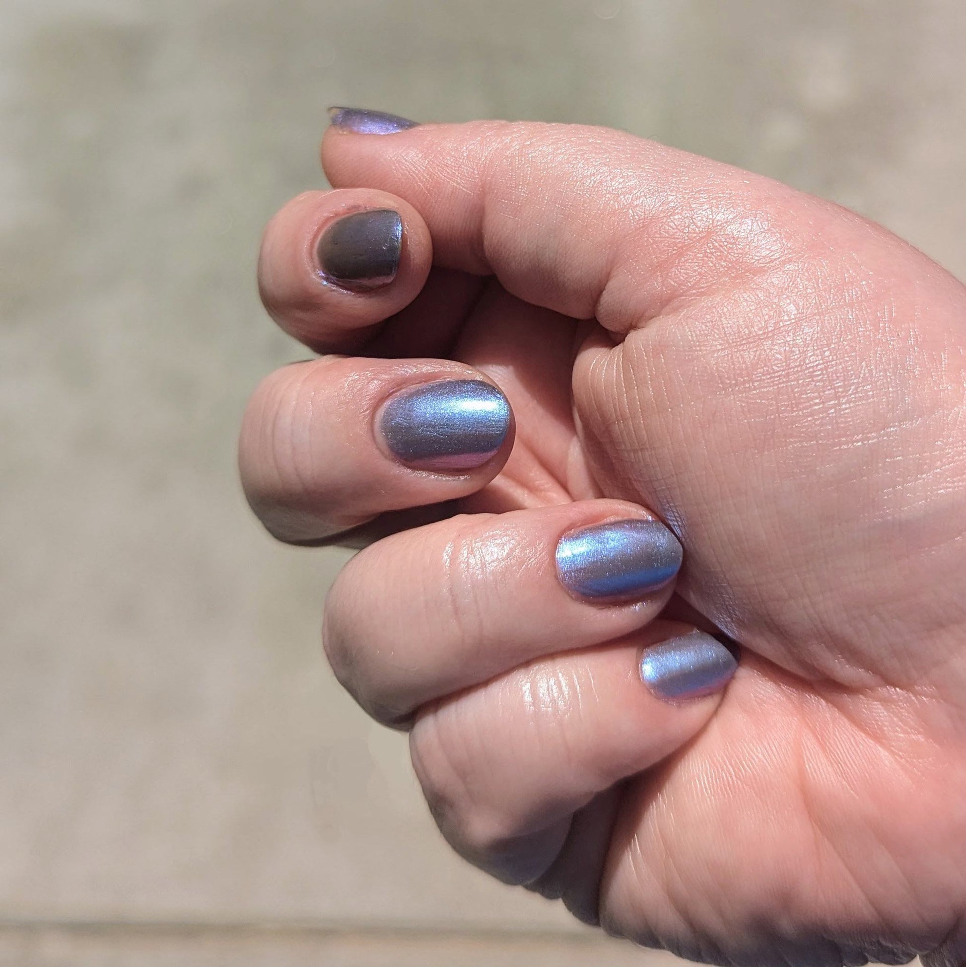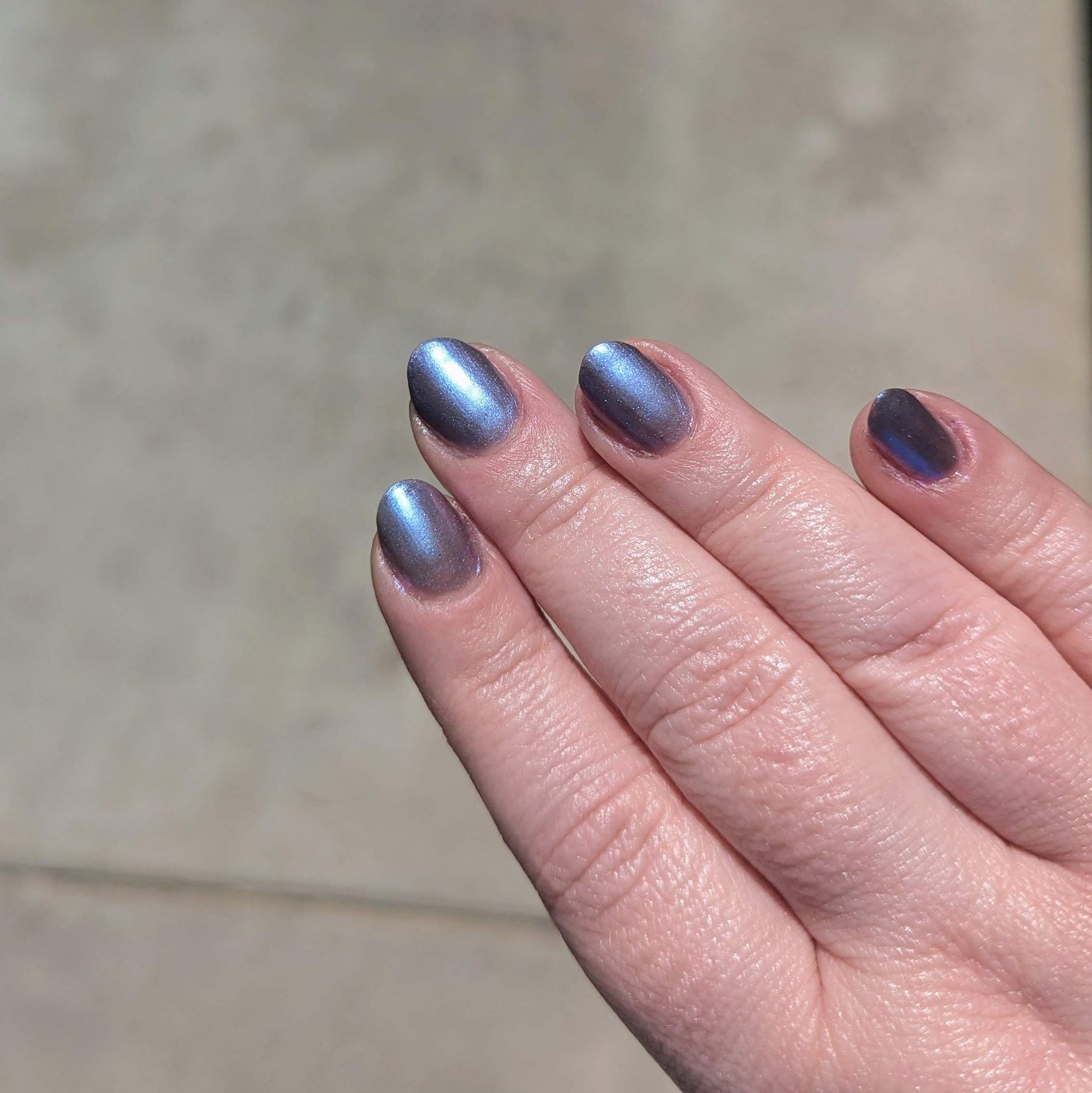 This color shift polish goes on smooth with a vibrant shimmer and nice depth. One coat will yield a purple/pink tone and a second coat will bring more blurples and blues! Two to three coats is recommended for maximum mani life.