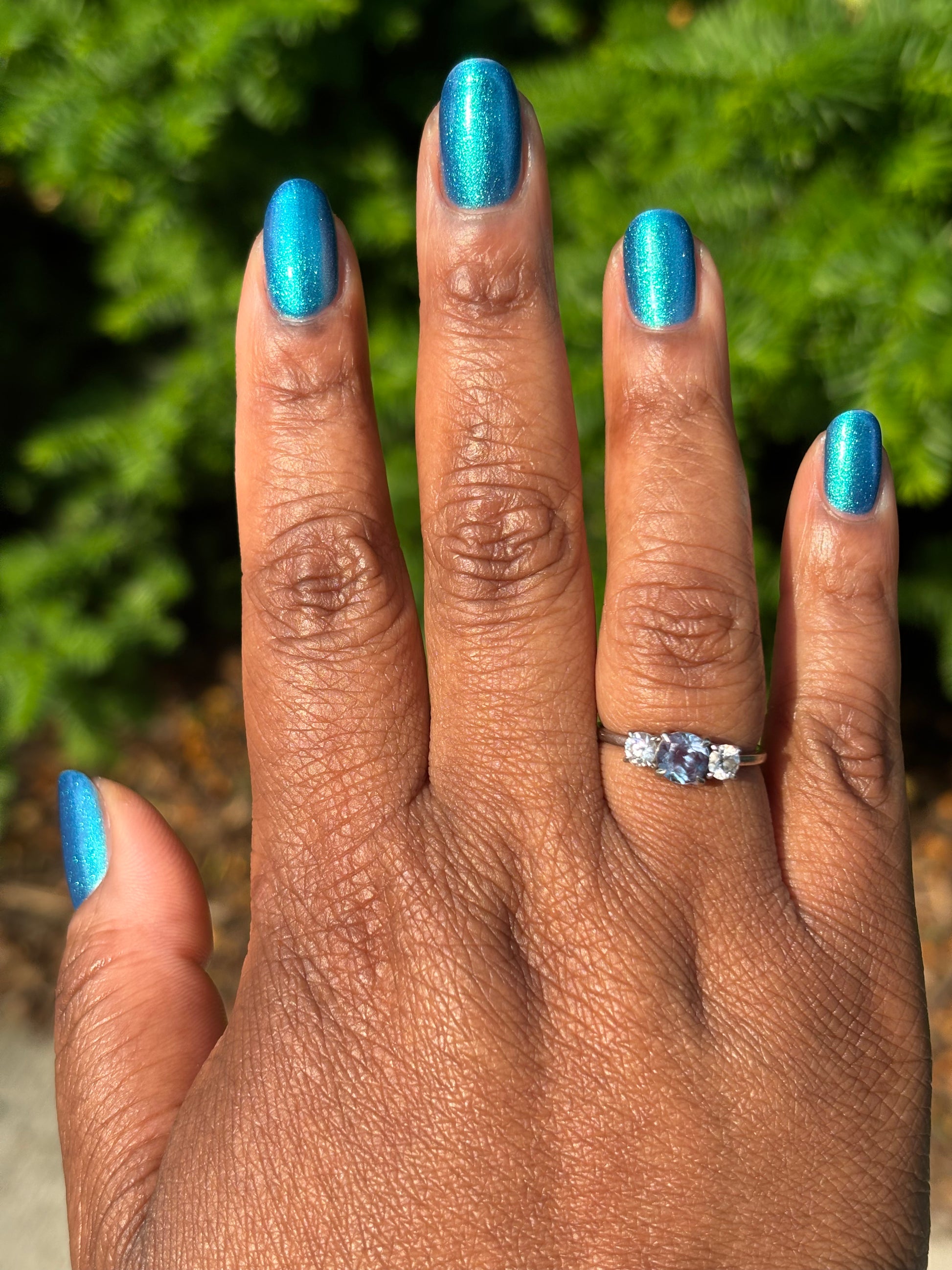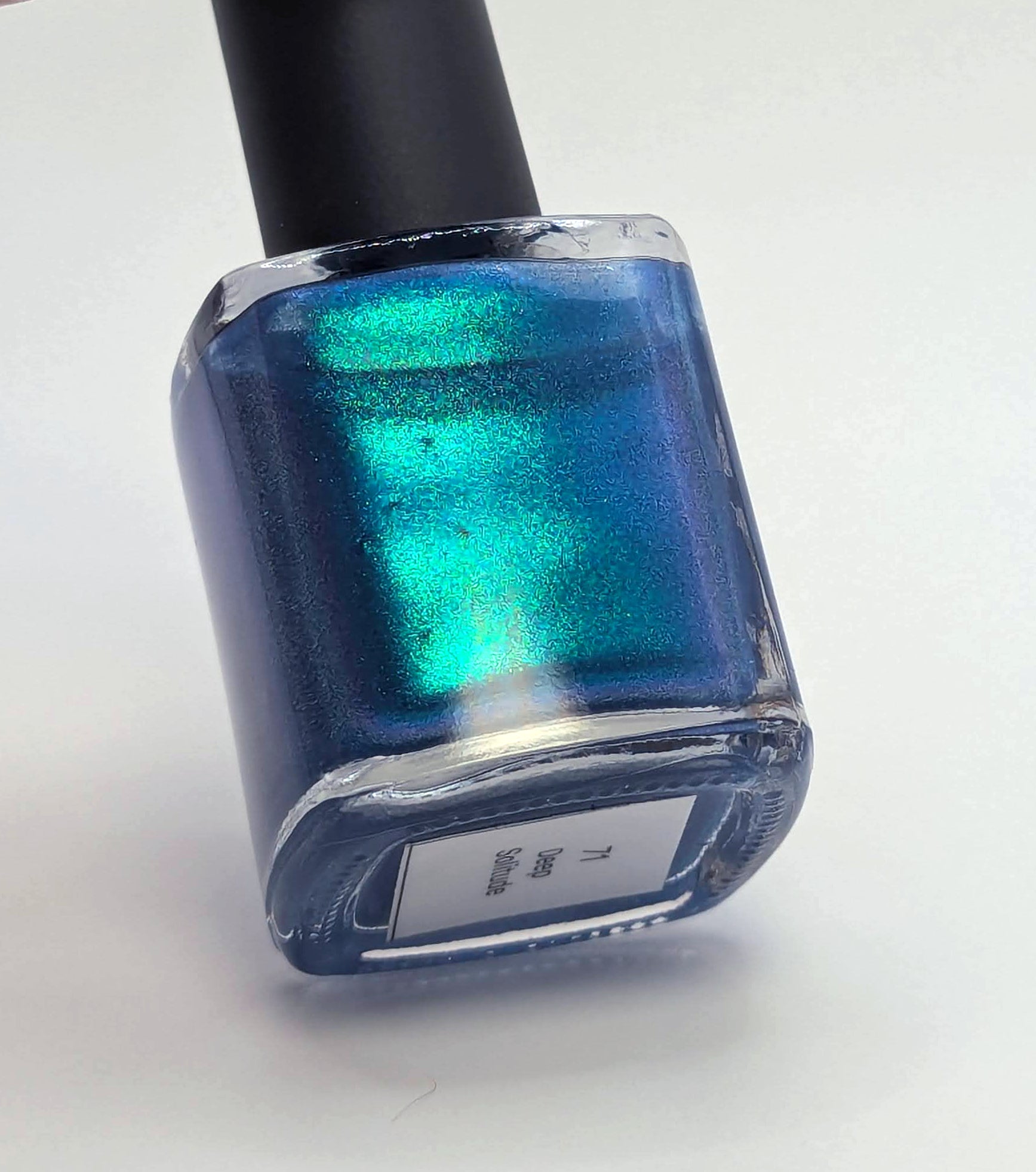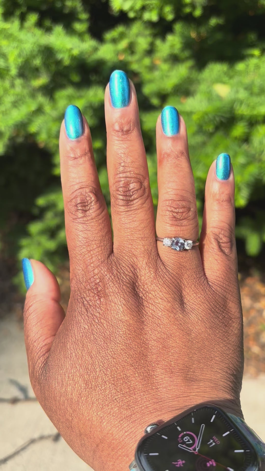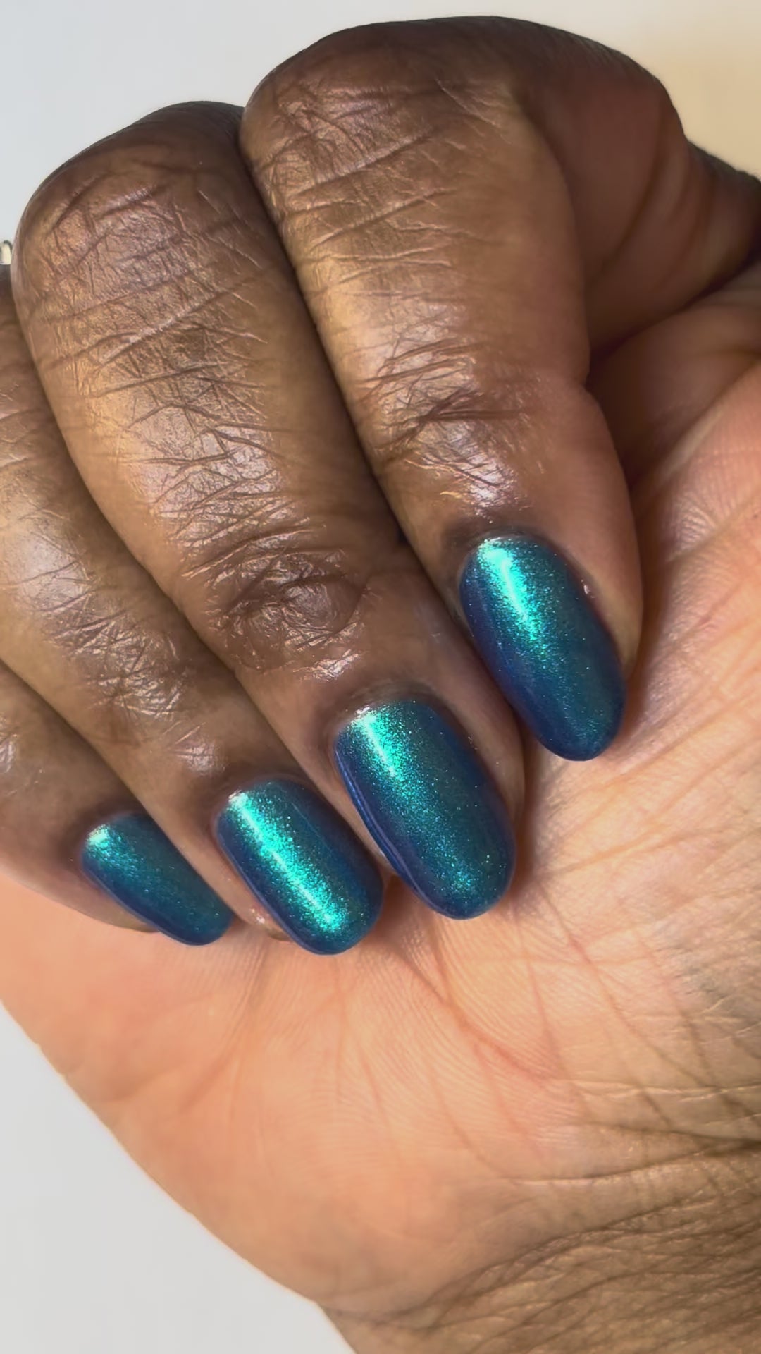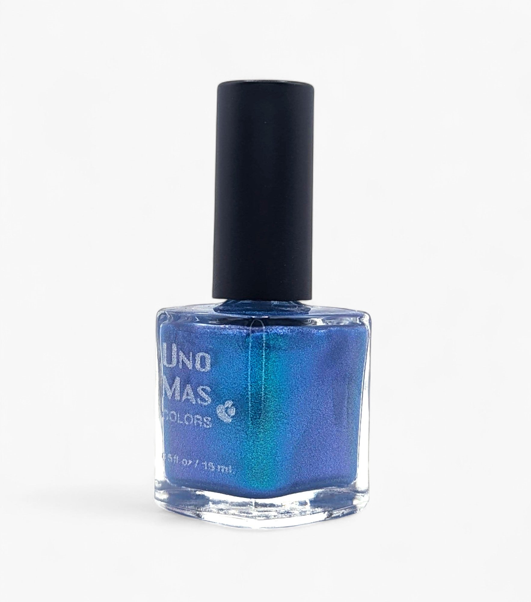 The strong blue tones give way to subtle green and purple shimmers as you layer. This color shift polish leans on the cool side of the palette. For best results, we suggest two even coats to get the deepest hues, and bright shimmers that will last a good period of time.