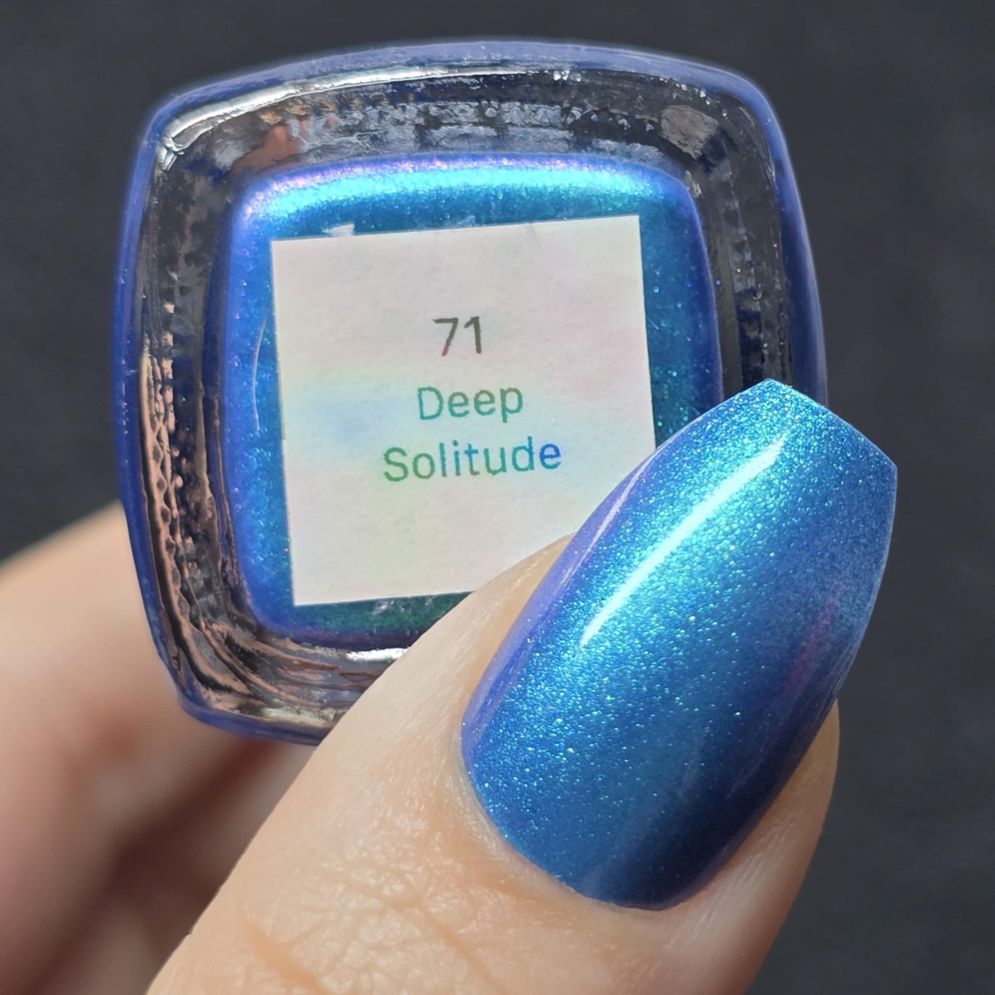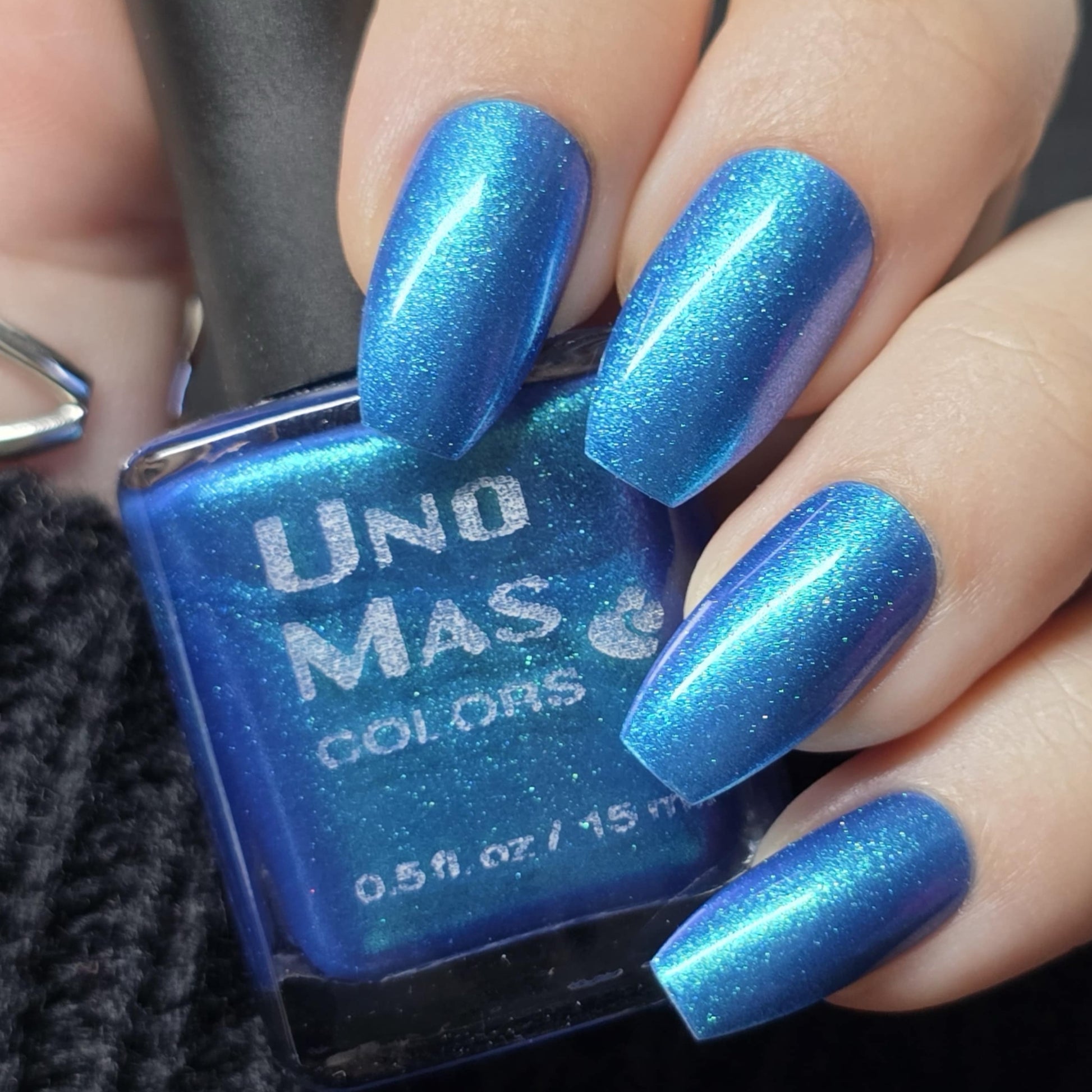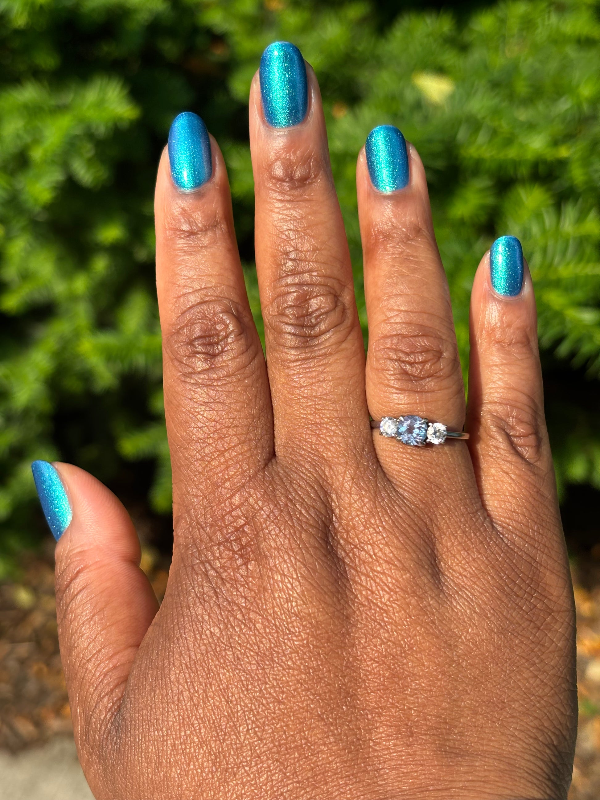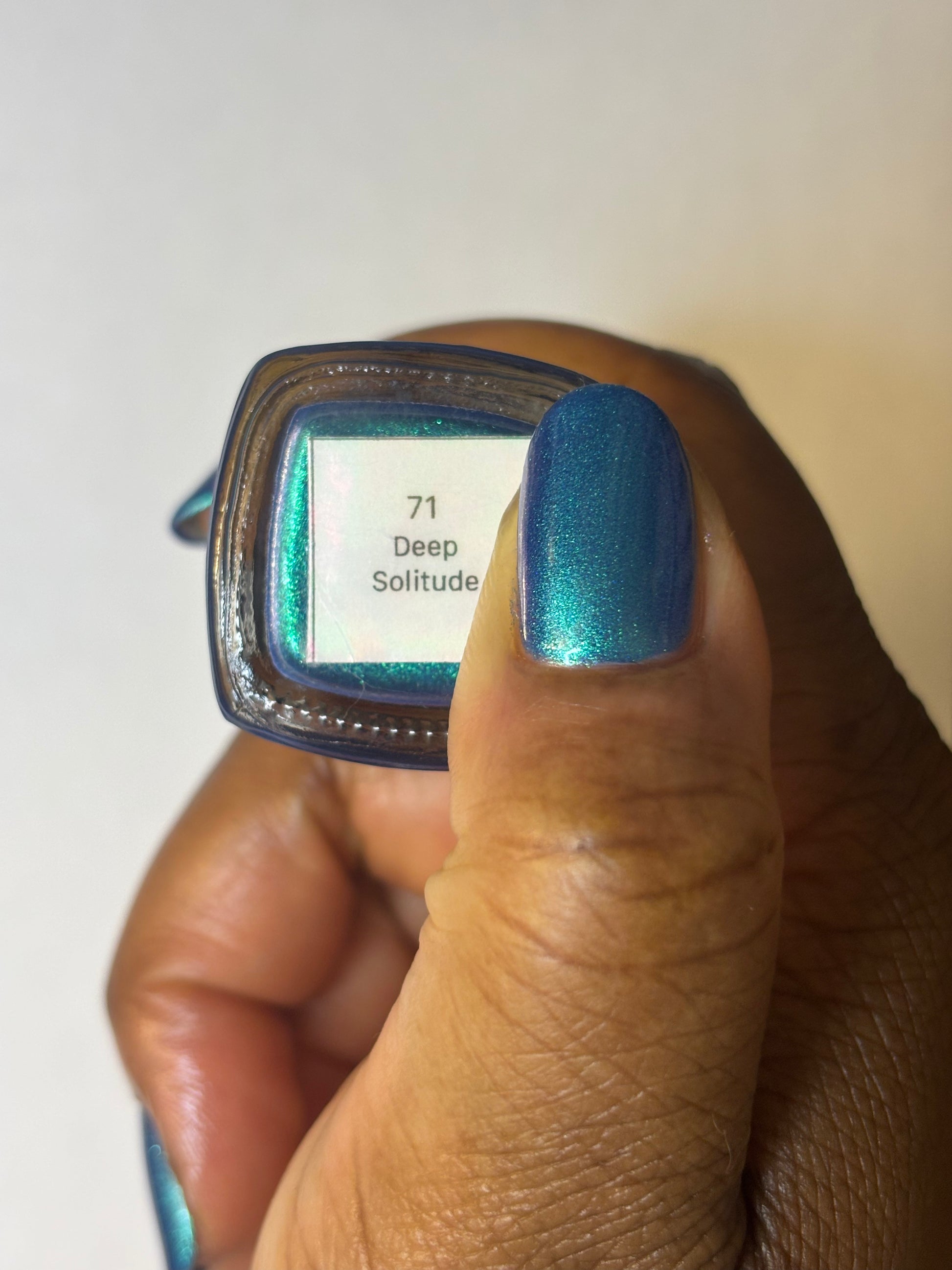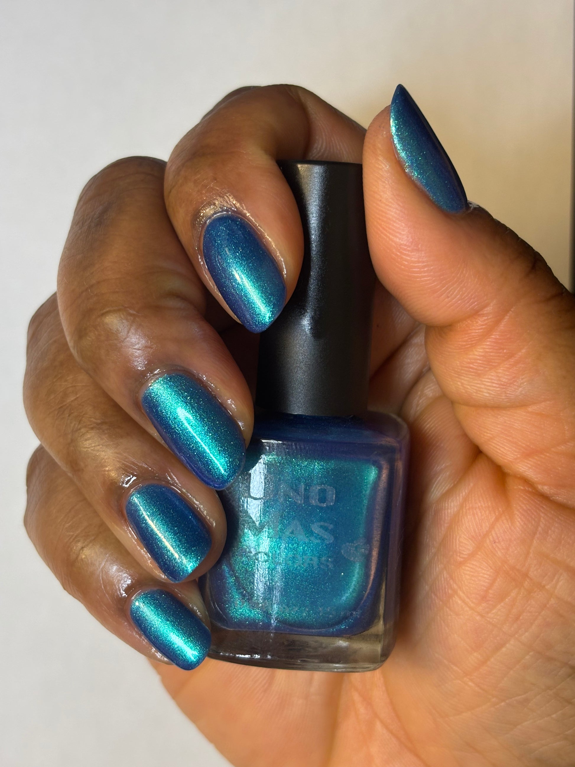 The strong blue tones give way to subtle green and purple shimmers as you layer. This color shift polish leans on the cool side of the palette. For best results, we suggest two even coats to get the deepest hues, and bright shimmers that will last a good period of time.