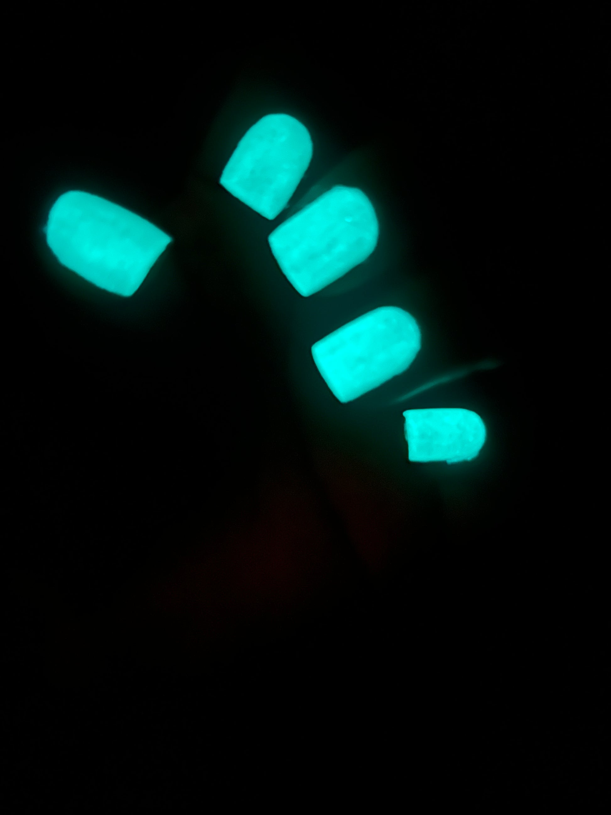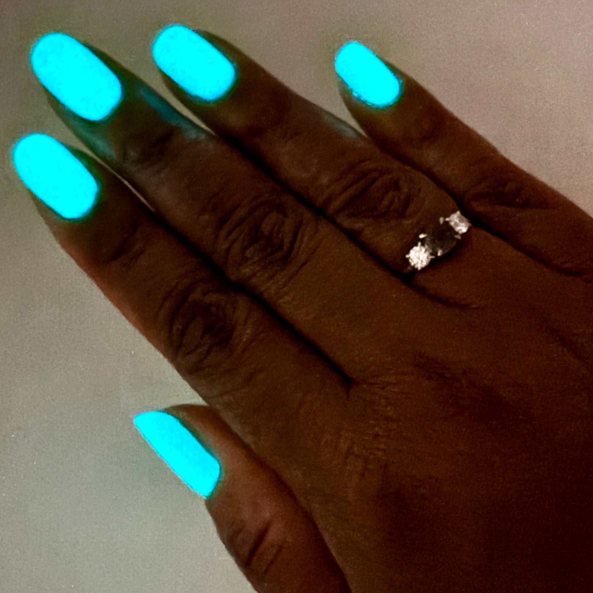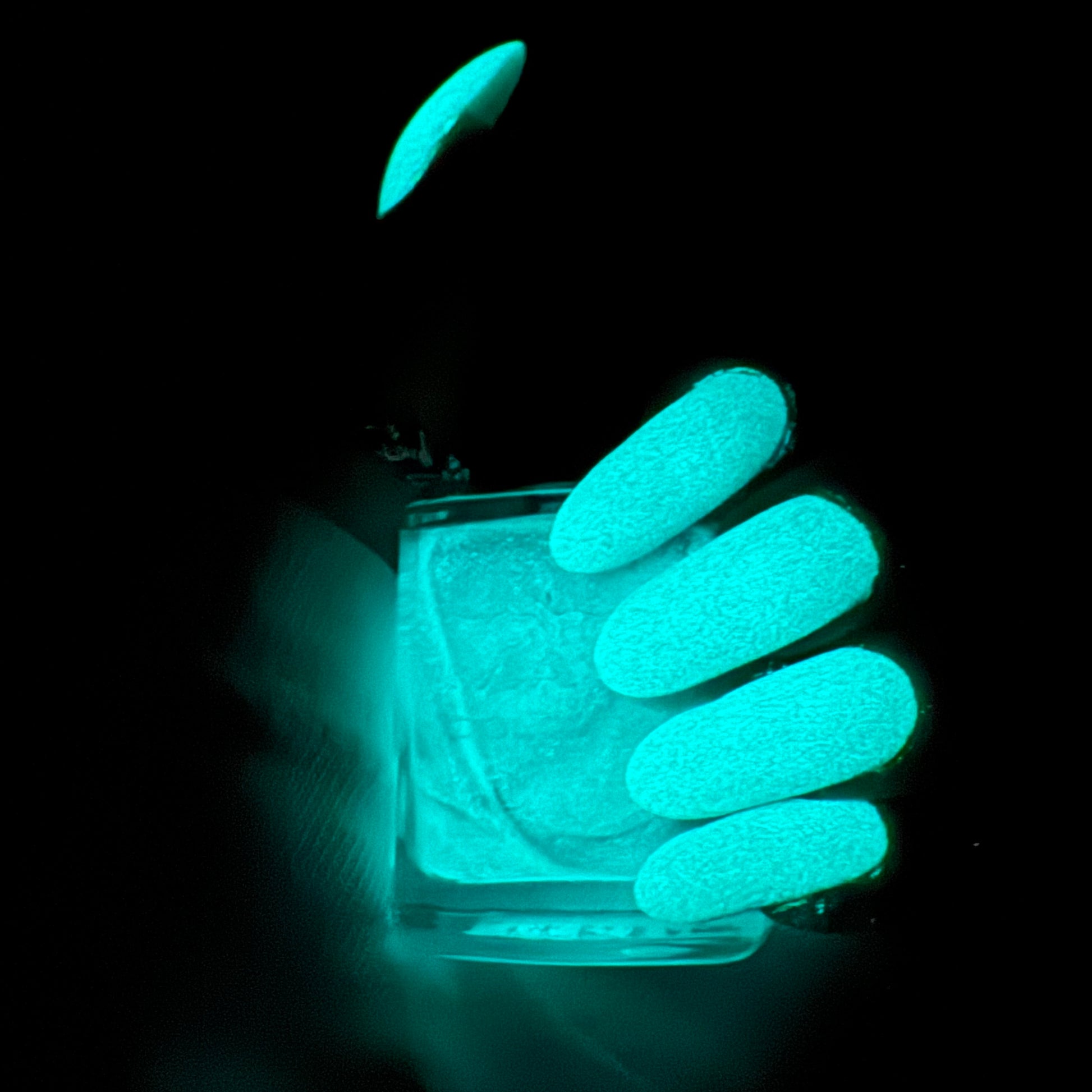 This is a deep teal neon creme with a soft teal glow that will be a guide in the dark for you and your ancestors.