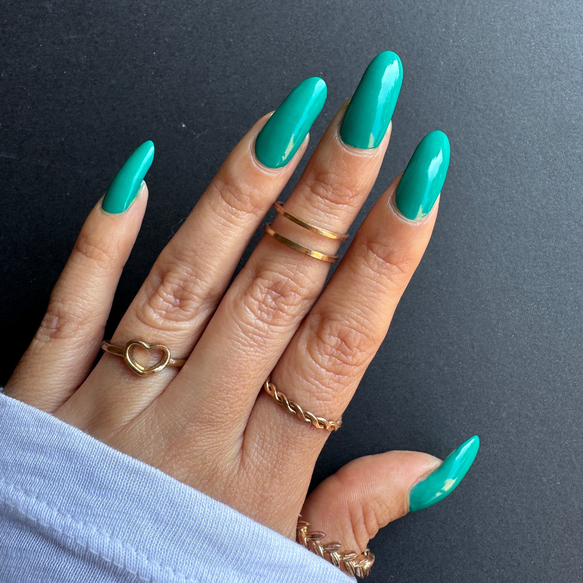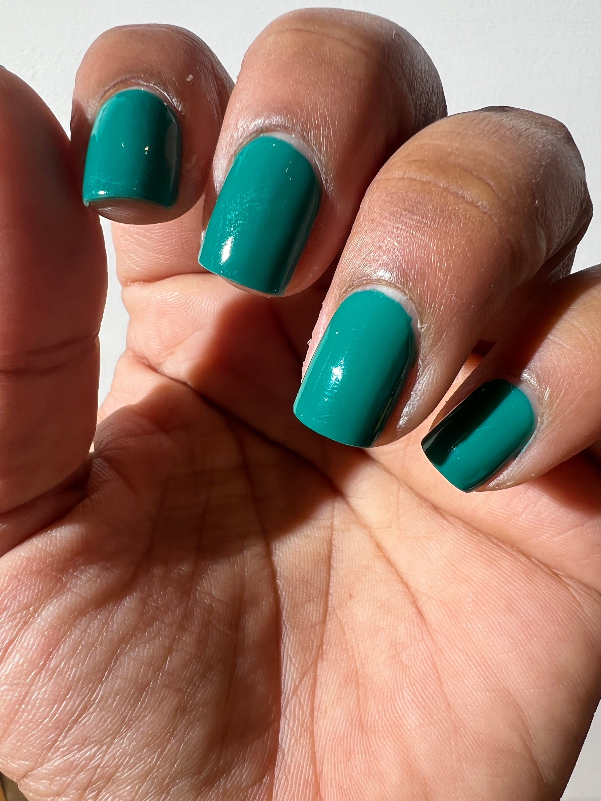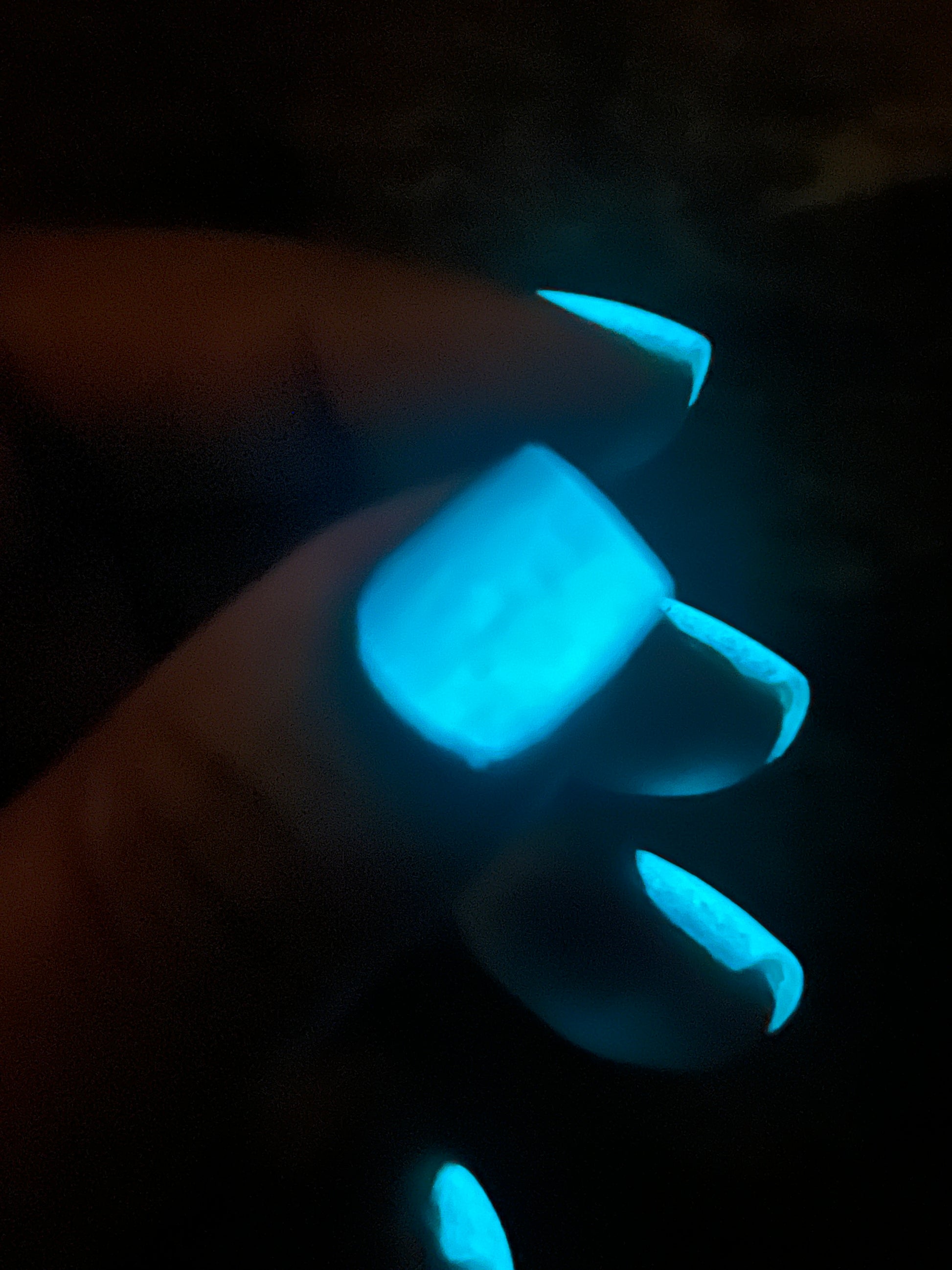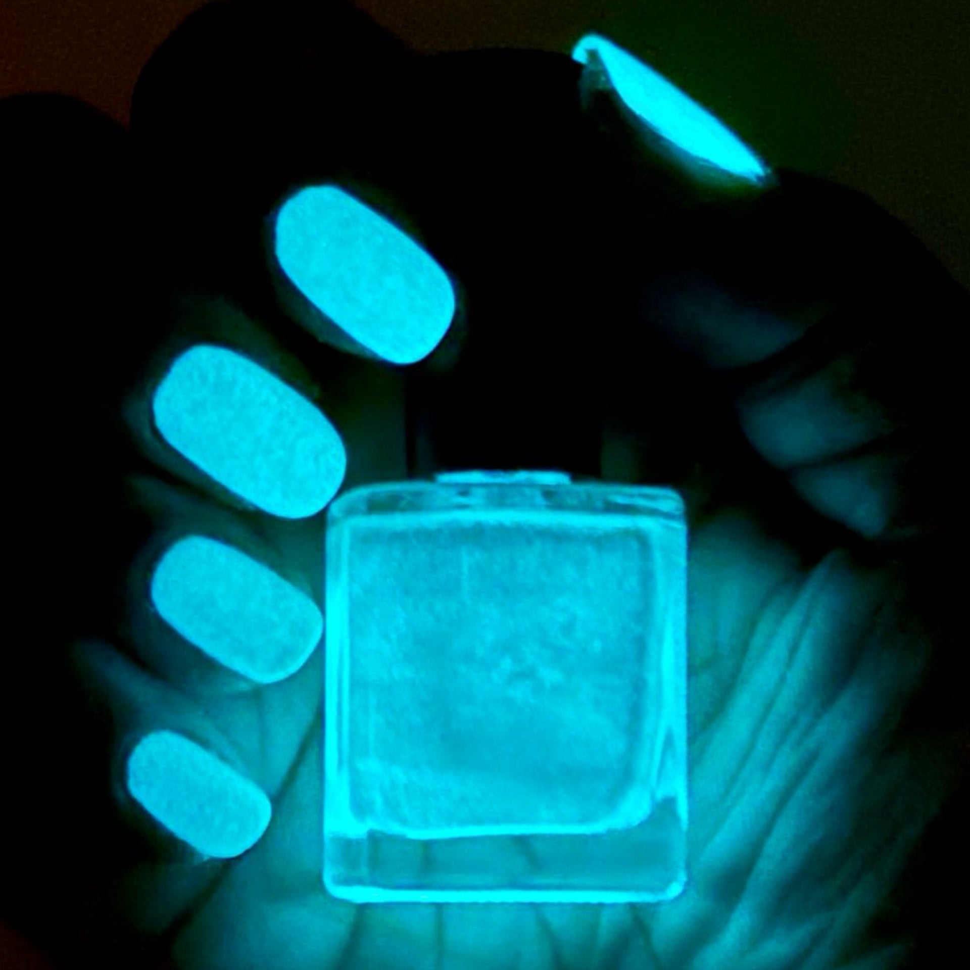 This is a deep teal neon creme with a soft teal glow that will be a guide in the dark for you and your ancestors.
