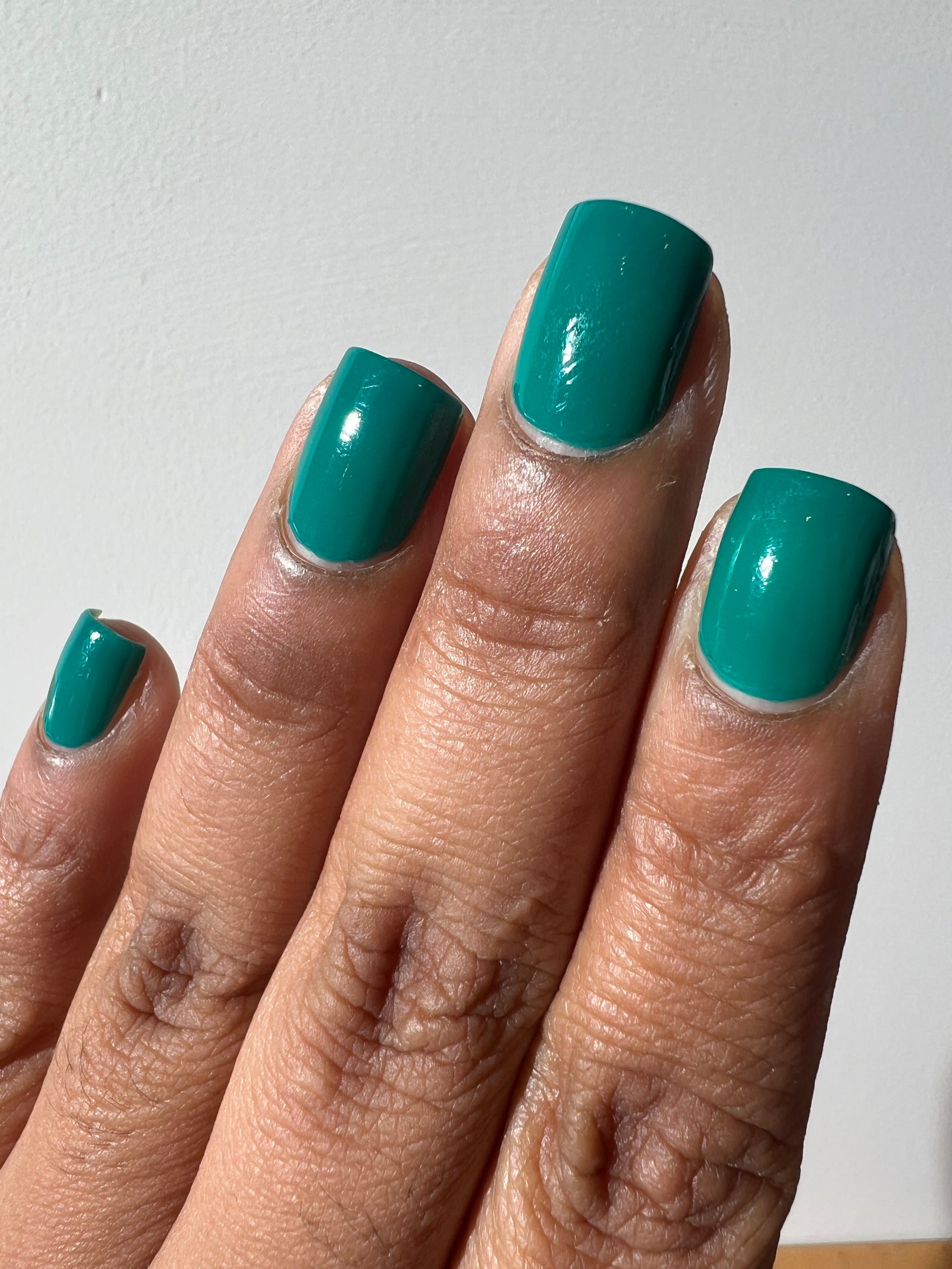 This is best applied in 2 coats for proper coverage and this polish will self level as it sits.