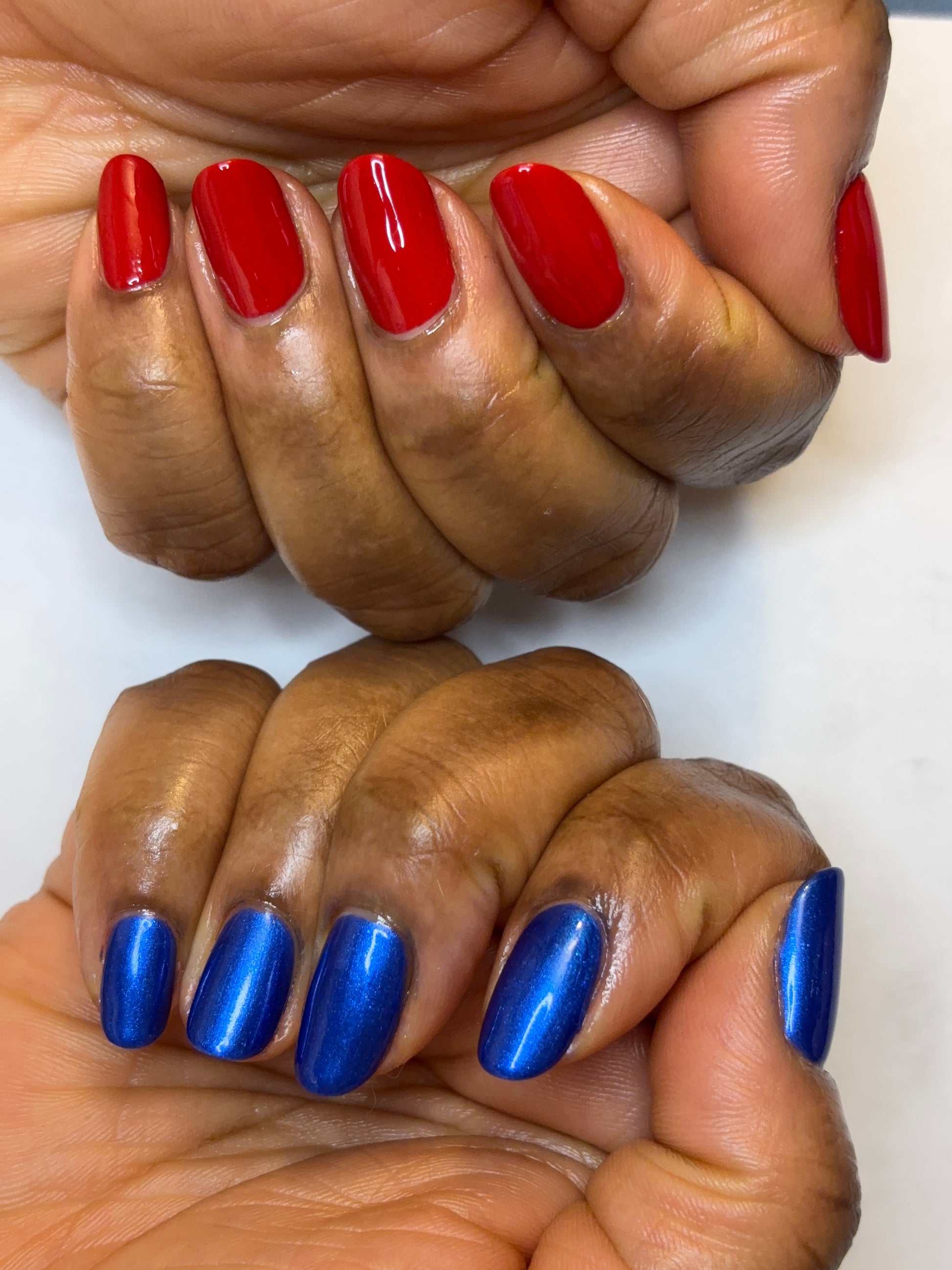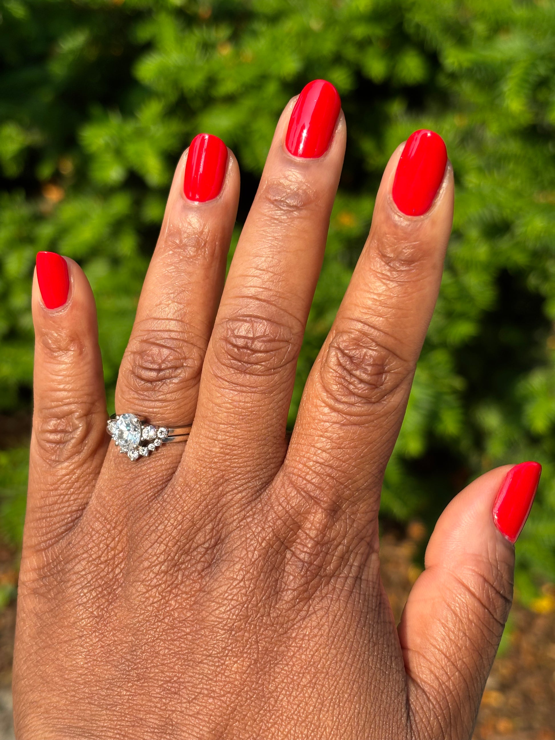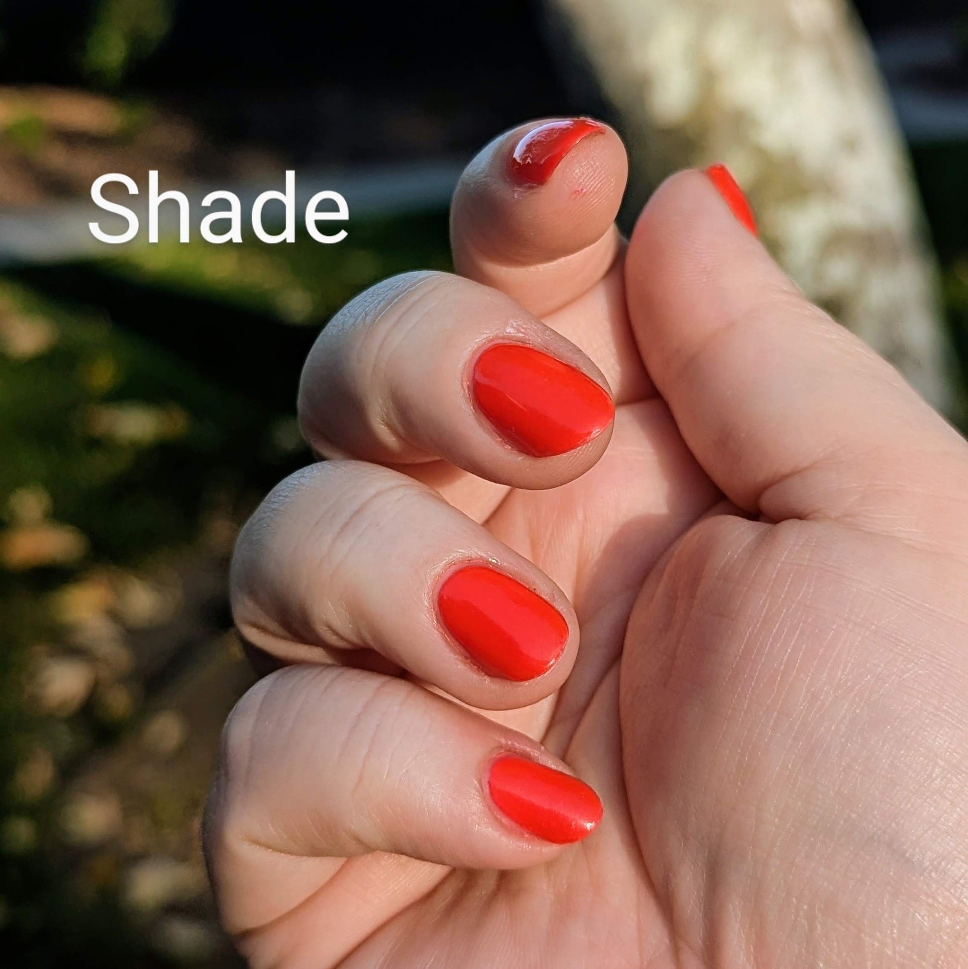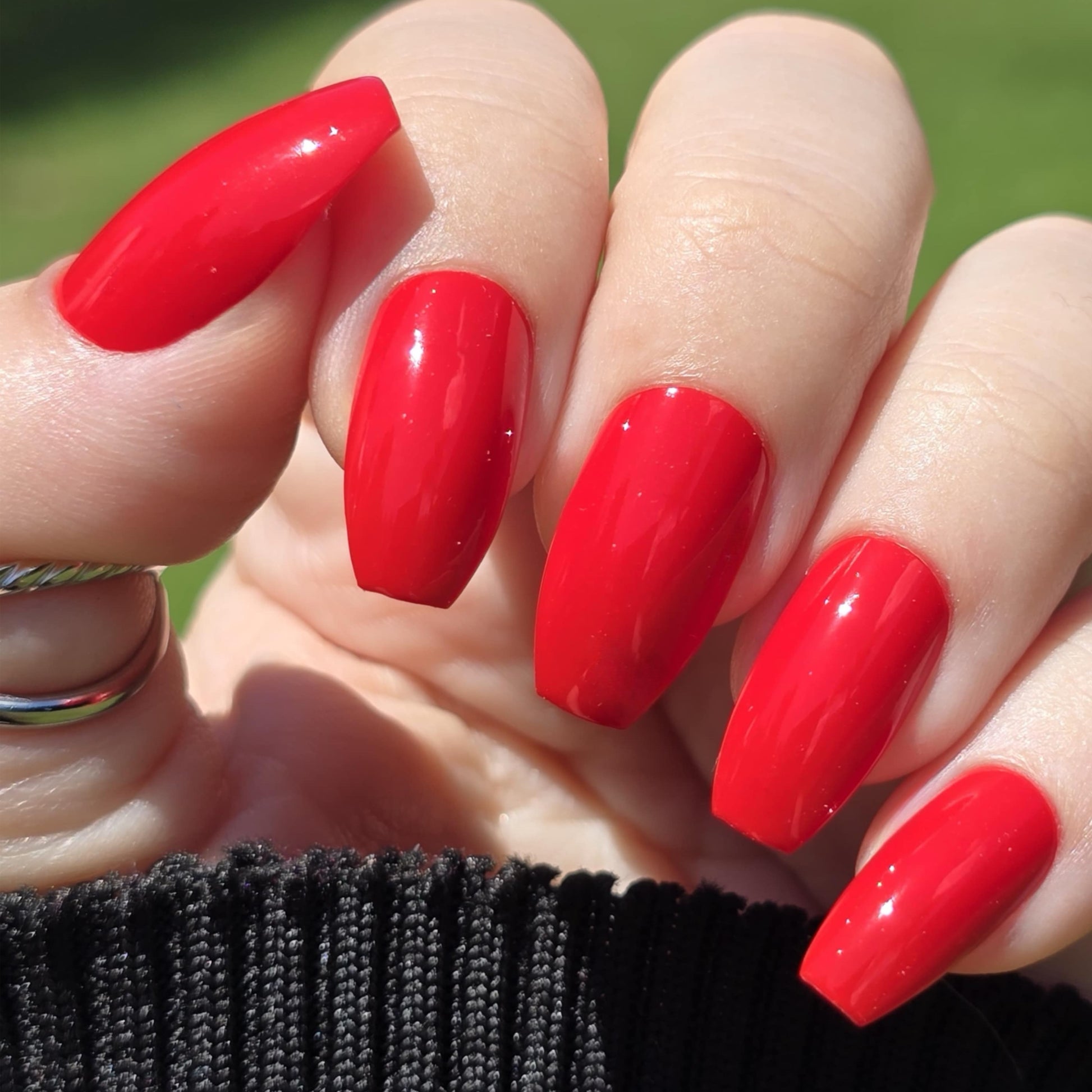 This polish is a custom red creme that's strong with one coat but we suggest two coats for a strong mani to match your energy!