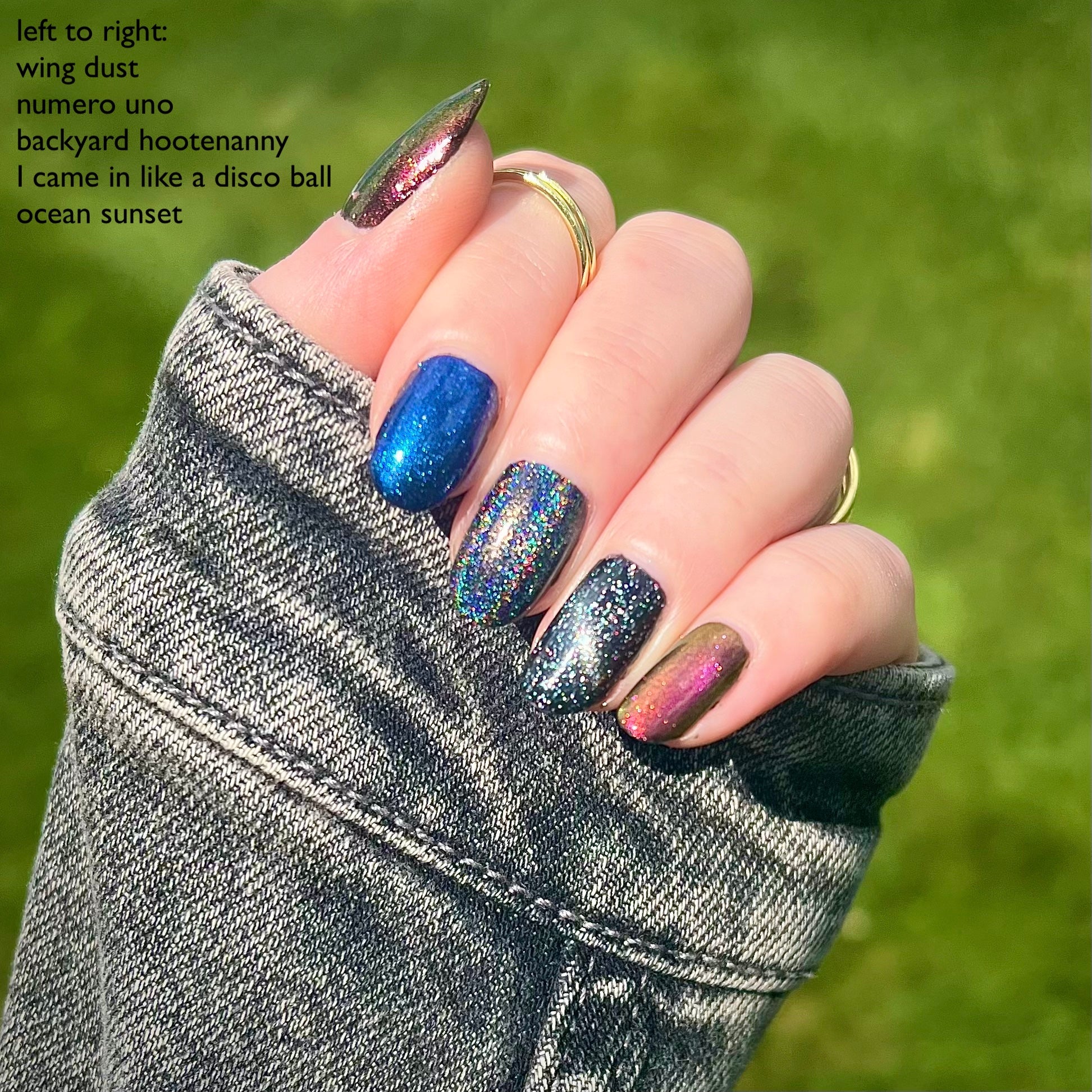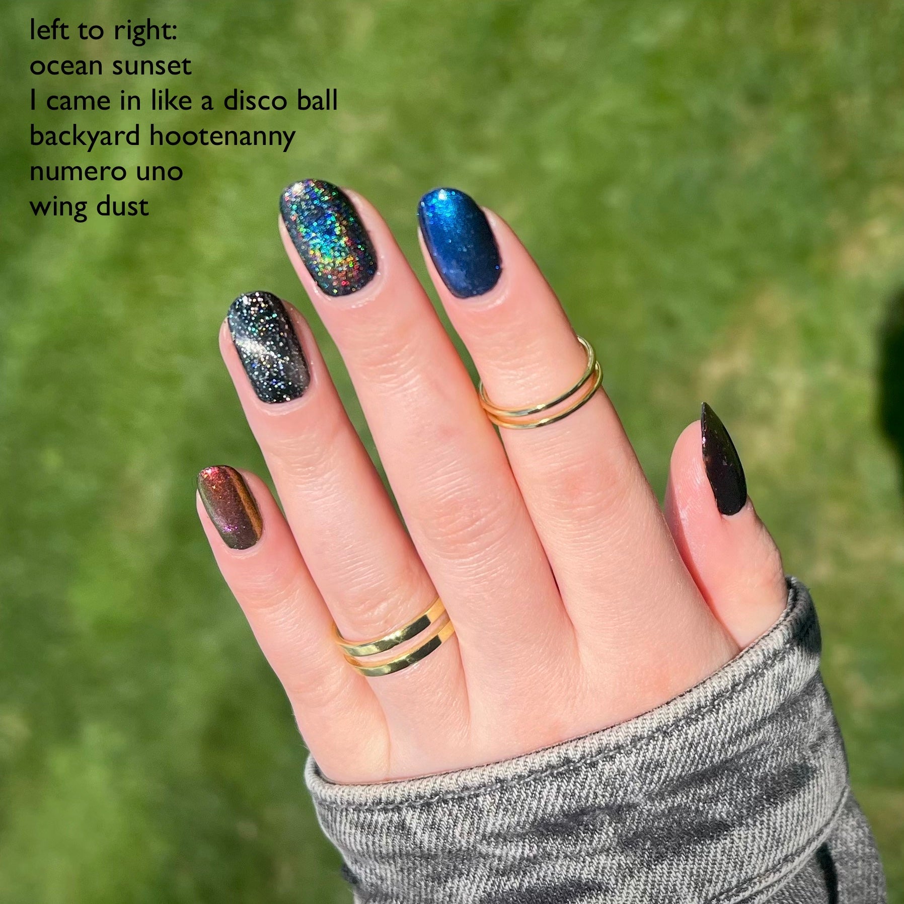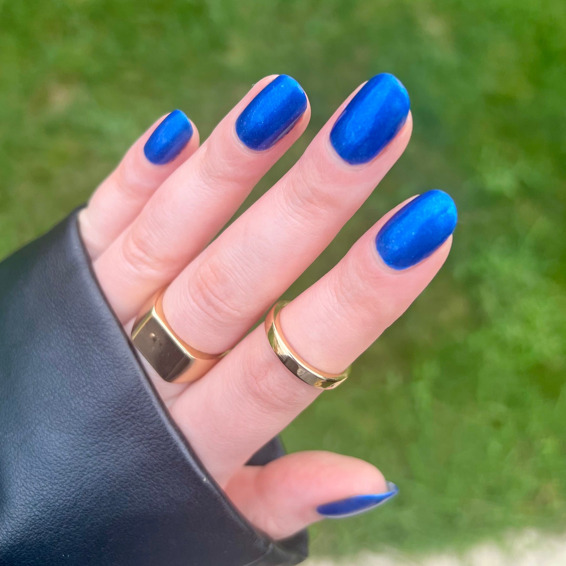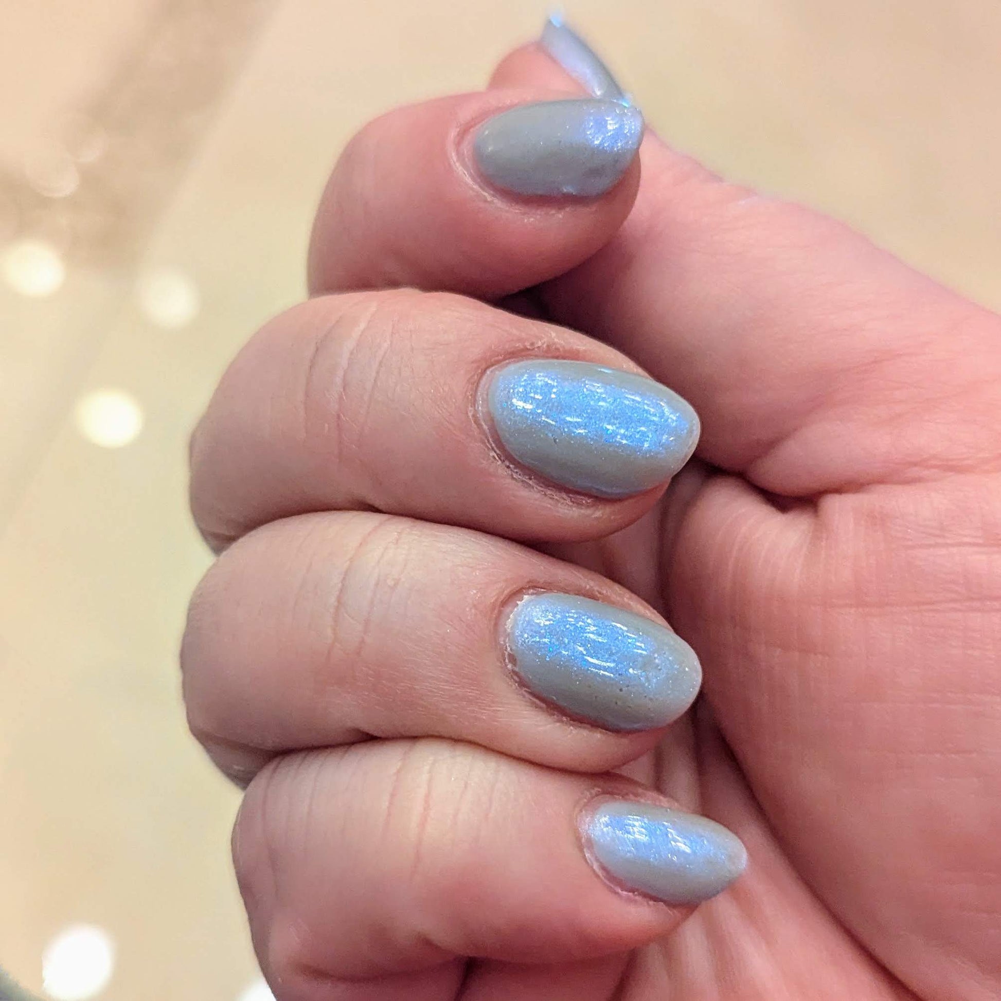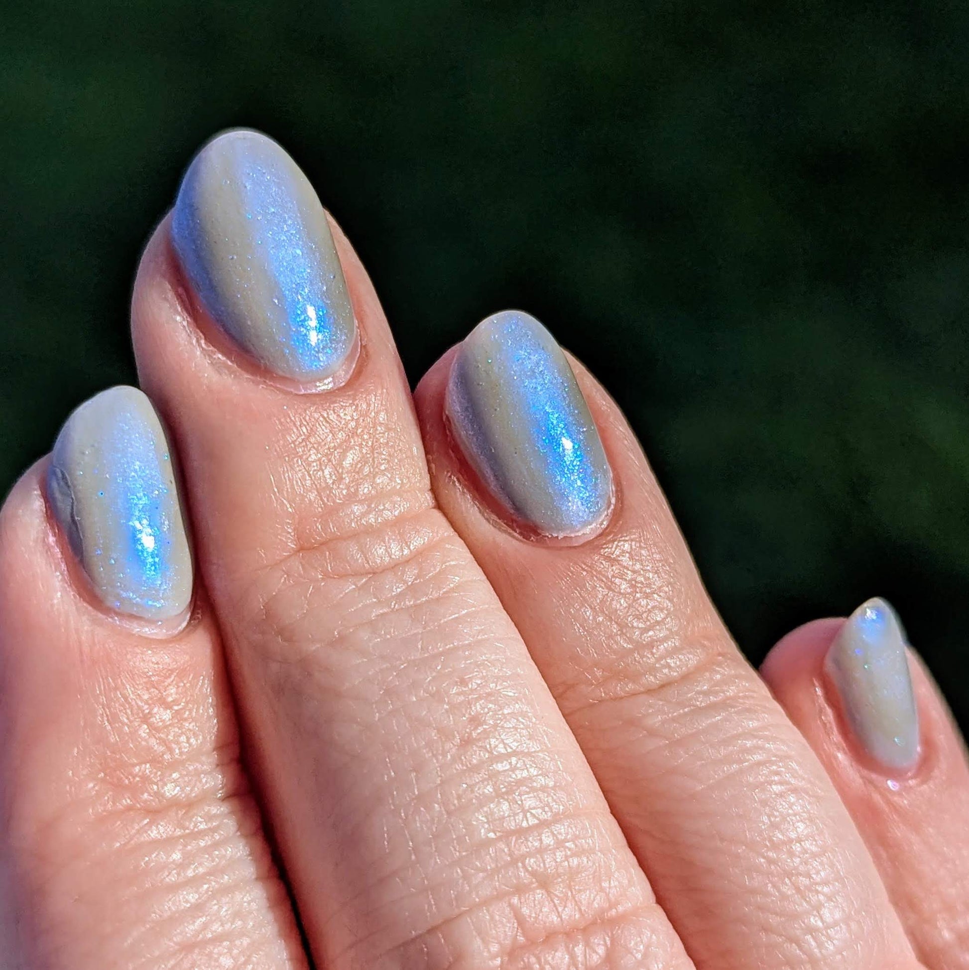 This is a sheer topper that adds a subtle blue glow and shimmer to any base color. We recommend two coats for maximum shimmer but the journey is up to you!