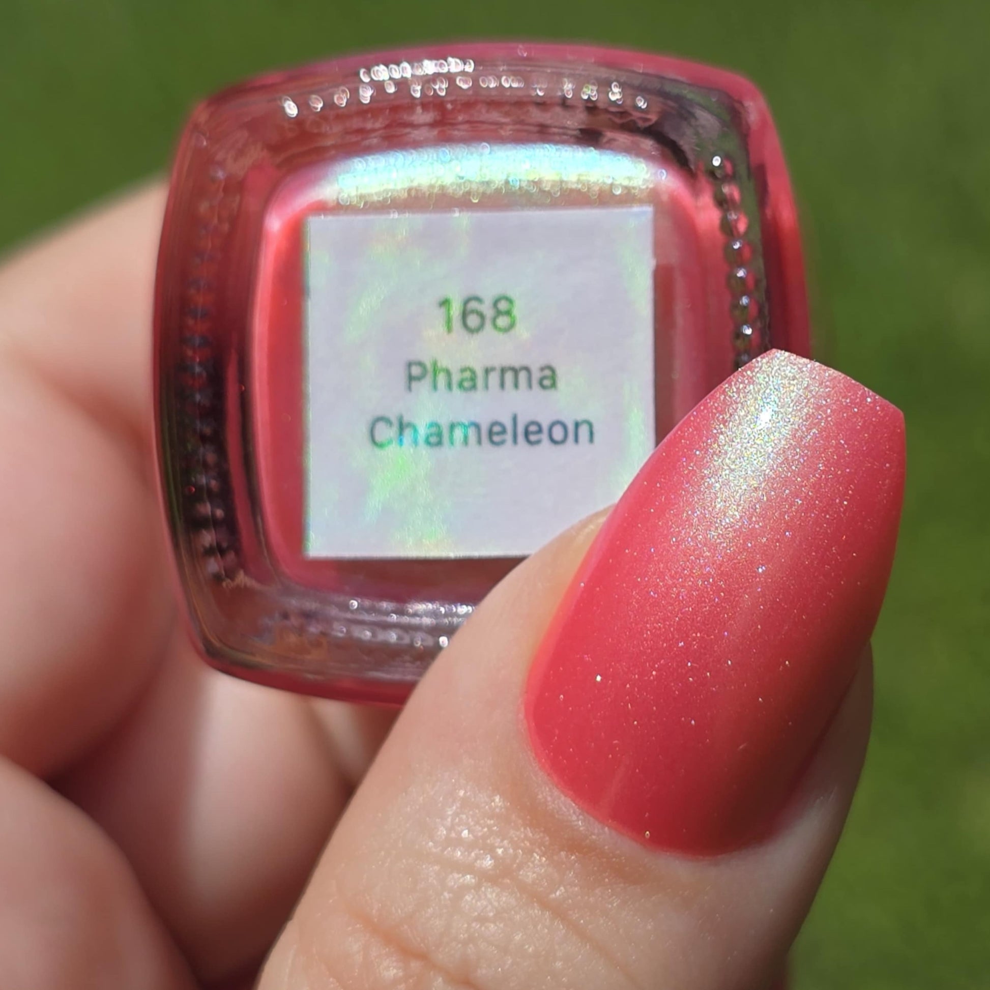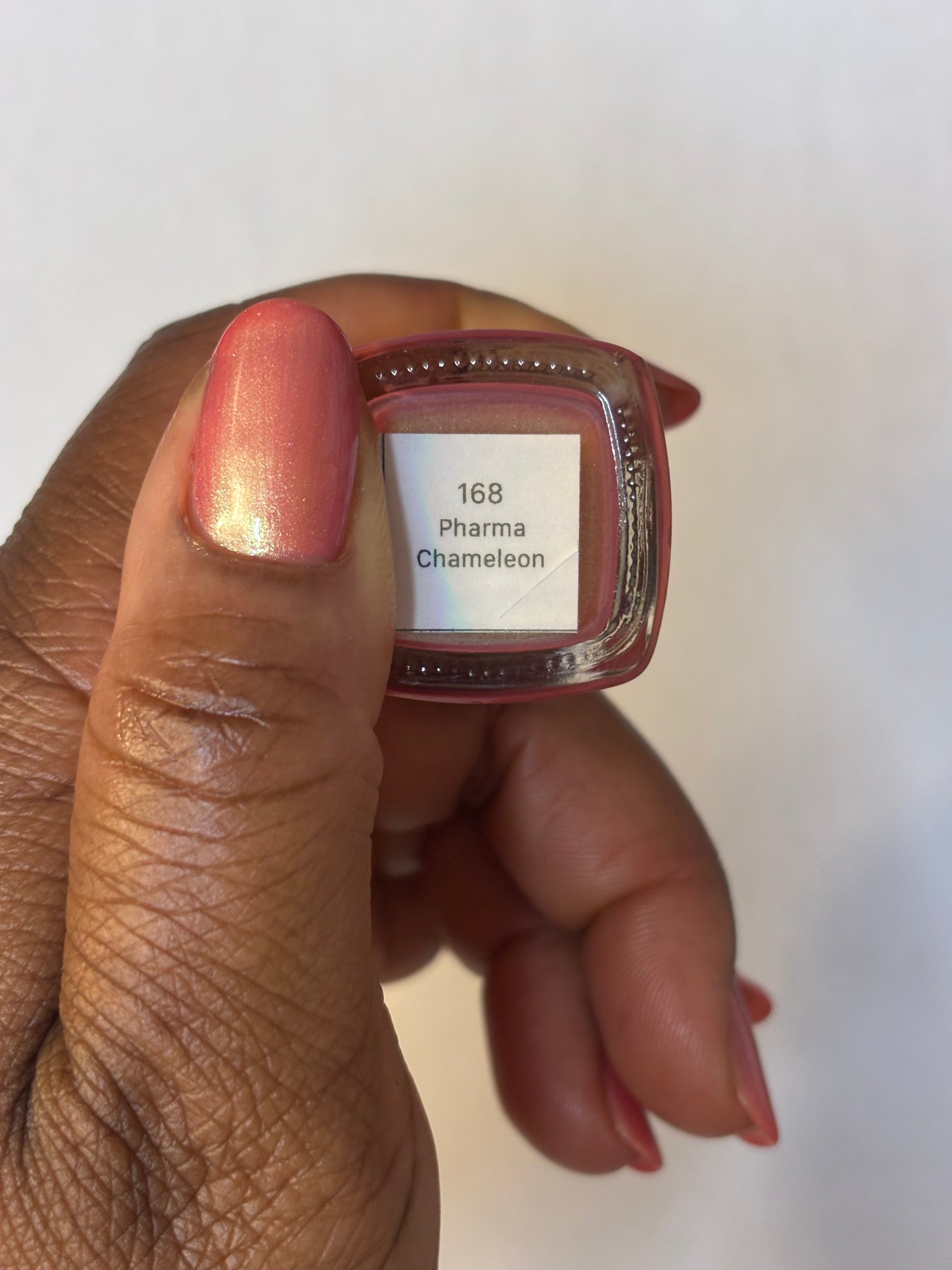 Sometimes the best medicine is having your nails adorned by an amazing polish. Well, our iridescent Pharma Chameleon is just what you need to feel great! We also recommend a cookie and a kitten and let's throw in a nap for good measure.