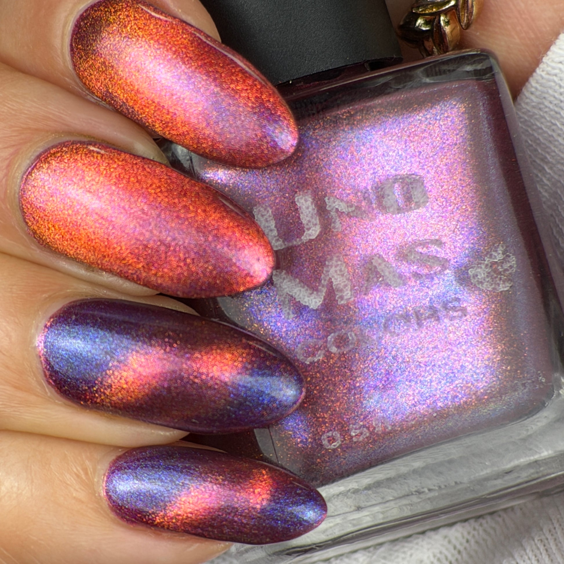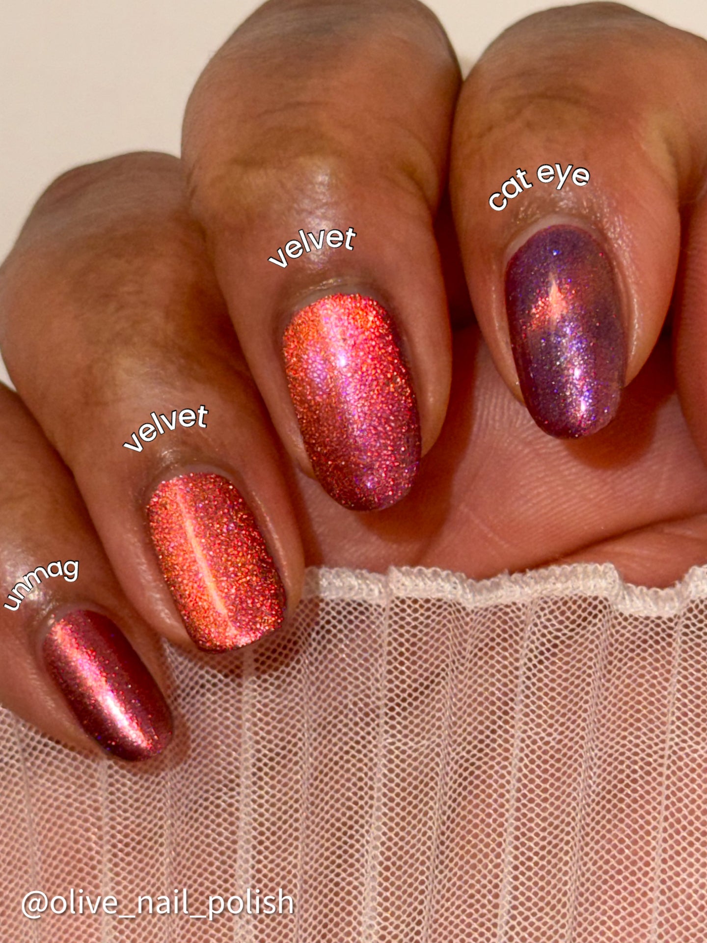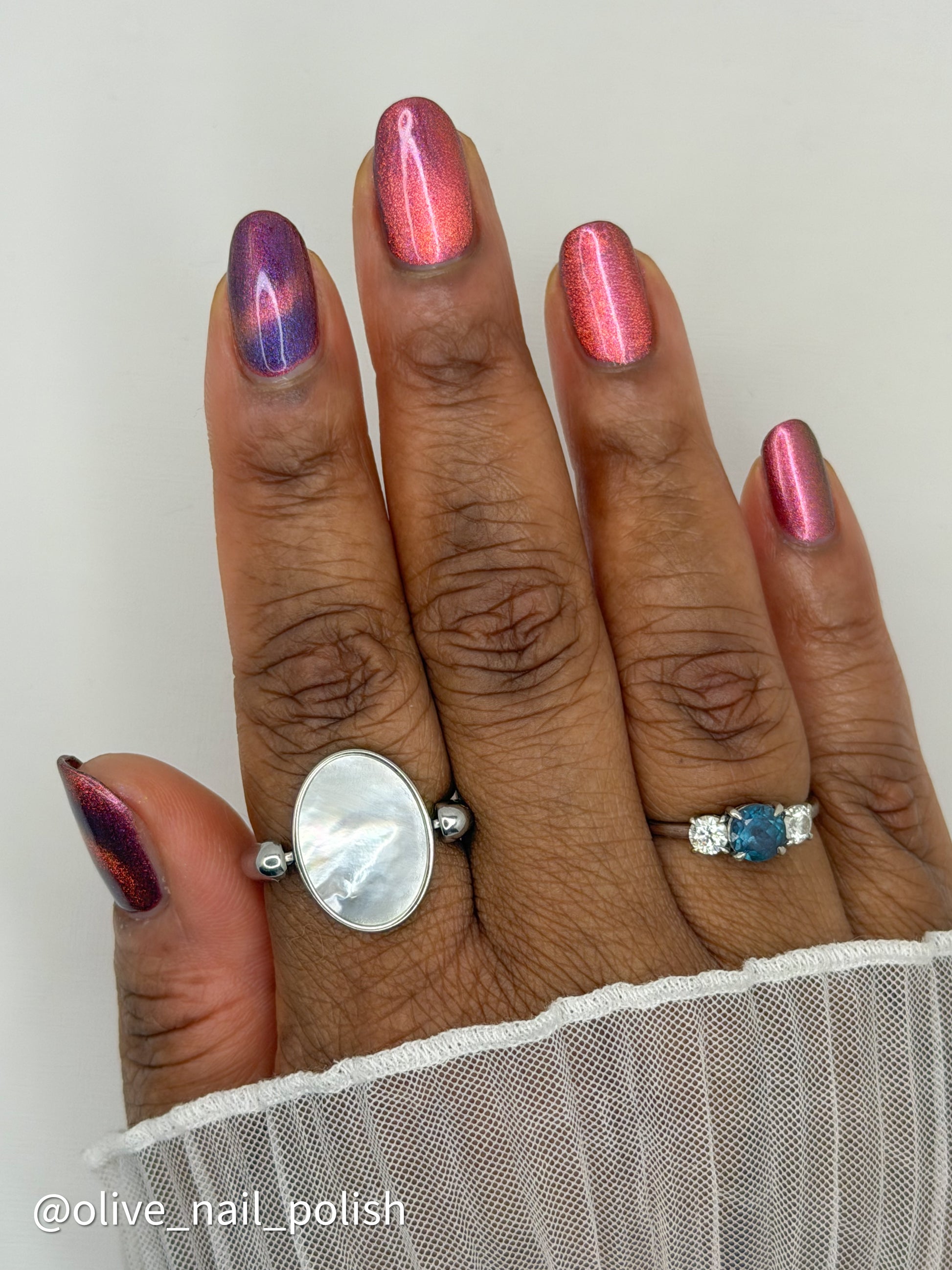 Our proprietary blend can make magnetic pigments spread more than other brands. If you want a crisp magnetic line, keep the magnet in place until the polish is dry to the touch on every layer.